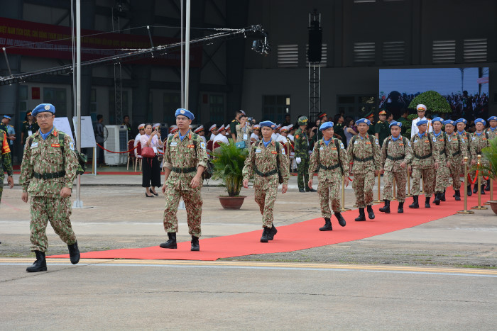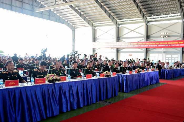 Dự lễ có các đồng chí: Thượng tướng Nguyễn Chí Vịnh, Ủy viên Trung ương Đảng, Ủy viên Thường vụ Quân ủy Trung ương, Thứ trưởng Bộ Quốc phòng, Trưởng Ban chỉ đạo Bộ Quốc phòng về tham gia hoạt động gìn giữ hòa bình Liên hợp quốc; đồng chí Nguyễn Văn Giàu, Ủy viên Trung ương Đảng, Chủ nhiệm Ủy ban đối ngoại của Quốc hội; Thượng tướng Phạm Ngọc Minh, Phó tổng Tham mưu trưởng QĐND Việt Nam; Trung tướng Lê Hiền Vân, Phó chủ nhiệm Tổng cục Chính trị QĐND Việt Nam; Ngài Atul Khare, Phó tổng Thư ký LHQ theo dõi trực tuyến lễ xuất quân và phát biểu từ Trụ sở Liên hợp quốc; đại diện các ban, bộ, ngành Trung ương và các cơ quan Liên hợp quốc, đại sứ, tổng lãnh sự, tùy viên quân sự các nước tại Việt Nam… Đại diện Bộ Tư lệnh Quân khu 7 có Thiếu tướng Nguyễn Văn Nam, Phó Tư lệnh Quân khu 7.