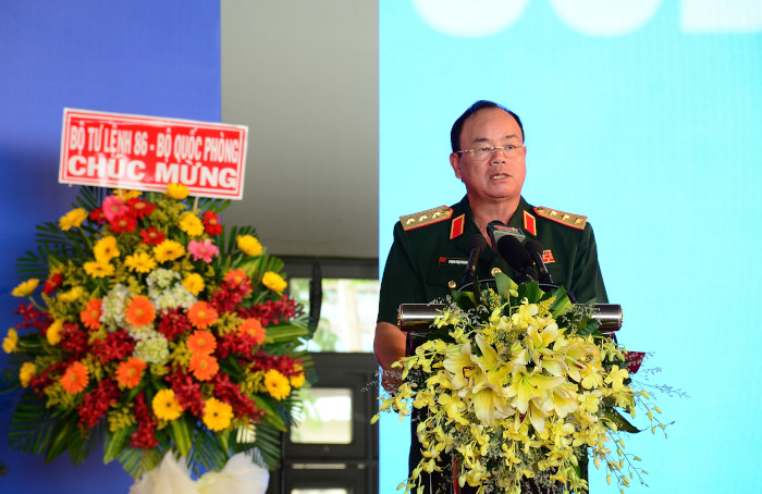 Thượng tướng Nguyễn Chí Vịnh, Ủy viên Trung ương Đảng, Thứ trưởng Bộ Quốc phòng phát biểu tại buổi lễ
