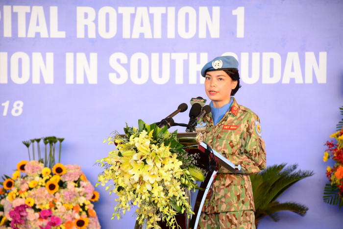 Đội hình Bệnh viện dã chiến cấp 2 số 1 sang làm nhiệm vụ gìn giữ hòa bình tại Phái bộ Liên hợp quốc ở Nam Sudan gồm có 63 cán bộ, nhân viên, thời gian làm nhiệm vụ trong 1 năm.