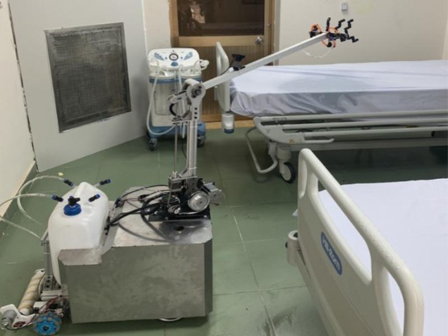 Robot khử khuẩn phòng cách ly, điều trị Covid-19 có 2 chức năng chính: Phun xịt thuốc khử khuẩn và lau sàn nhà sau khi phun xong. Ngoài ra robot còn biết tự khử khuẩn mình trước khi ra khỏi phòng cách ly. Nhân viên y tế có thể ngồi ở khu hành chính để điều khiển robot từ xa qua mạng 3G hoặc mạng internet.