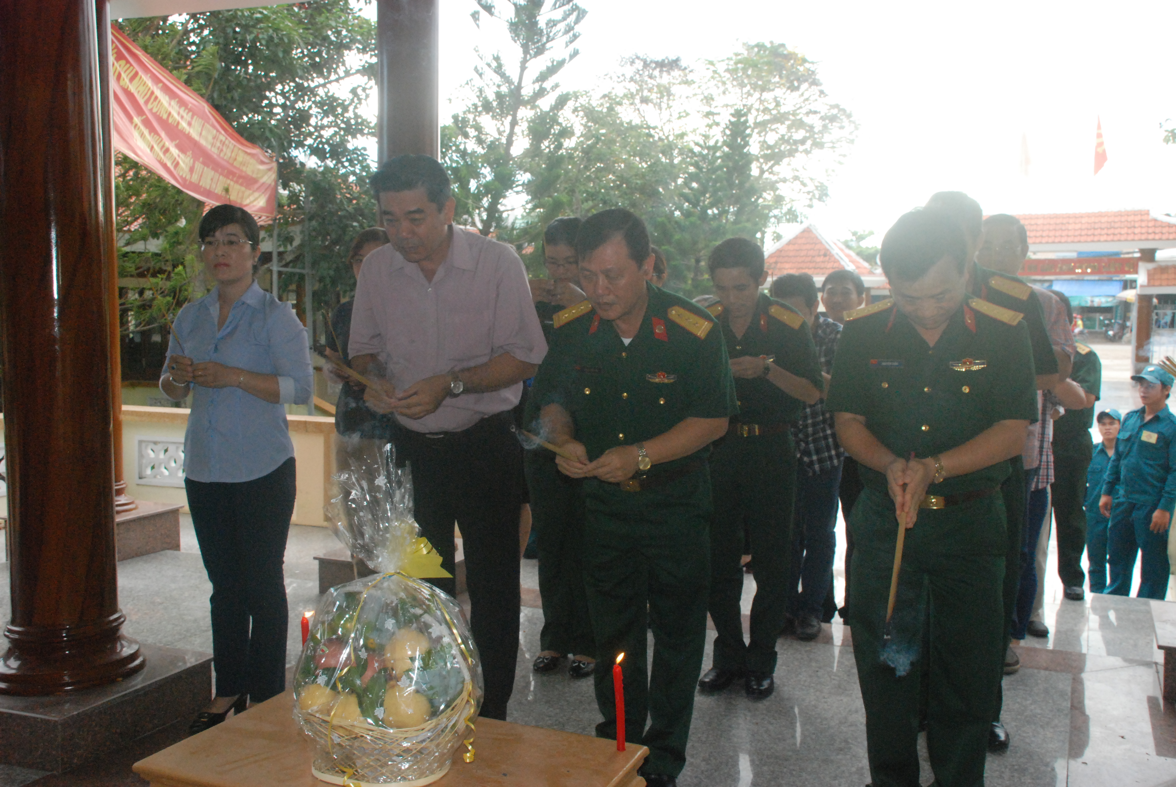 Trước khi khai mạc buổi khám bệnh, y bác sĩ Bệnh viện đến dâng hương tại Nhà bia truyền thống huyện Nhà Bè