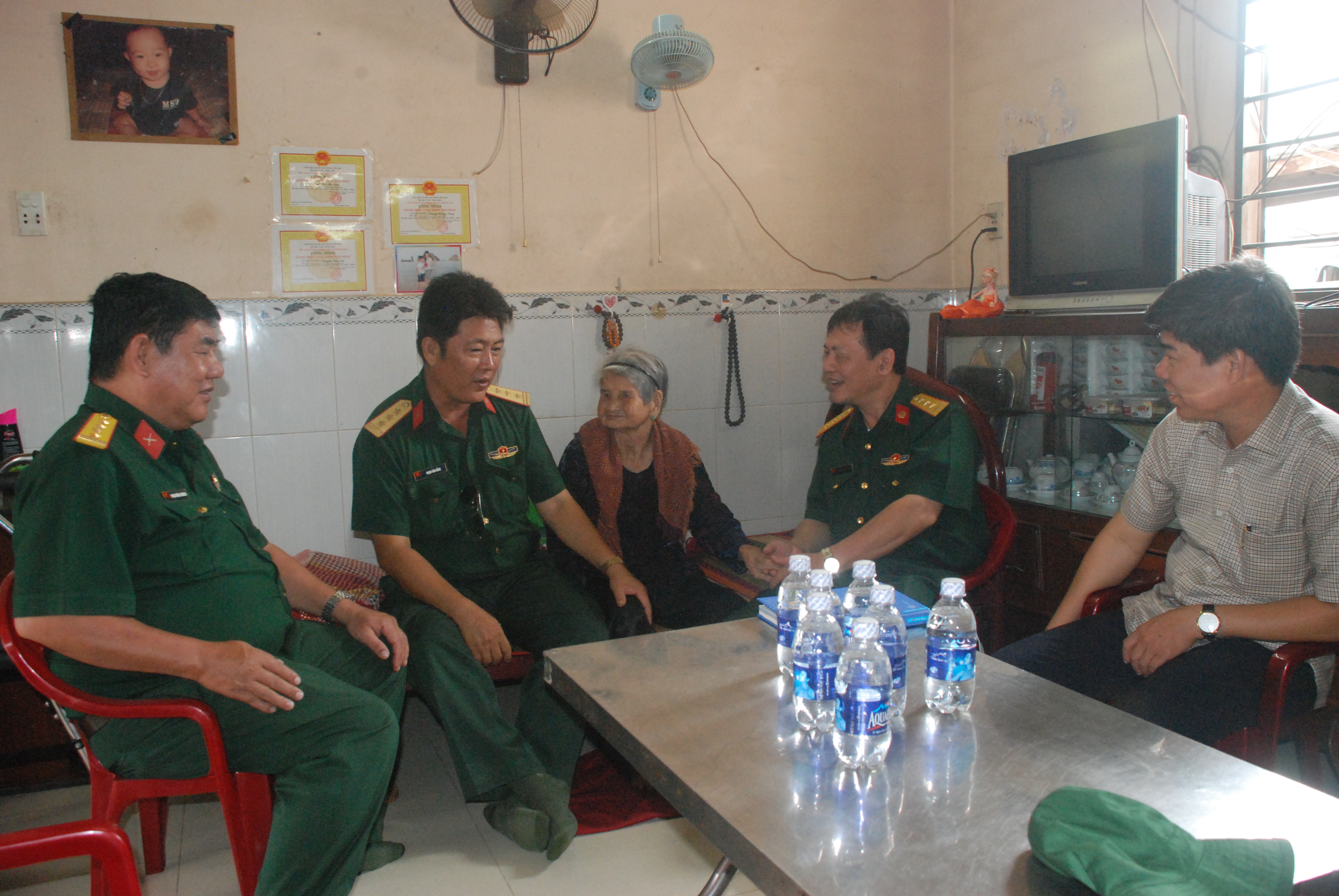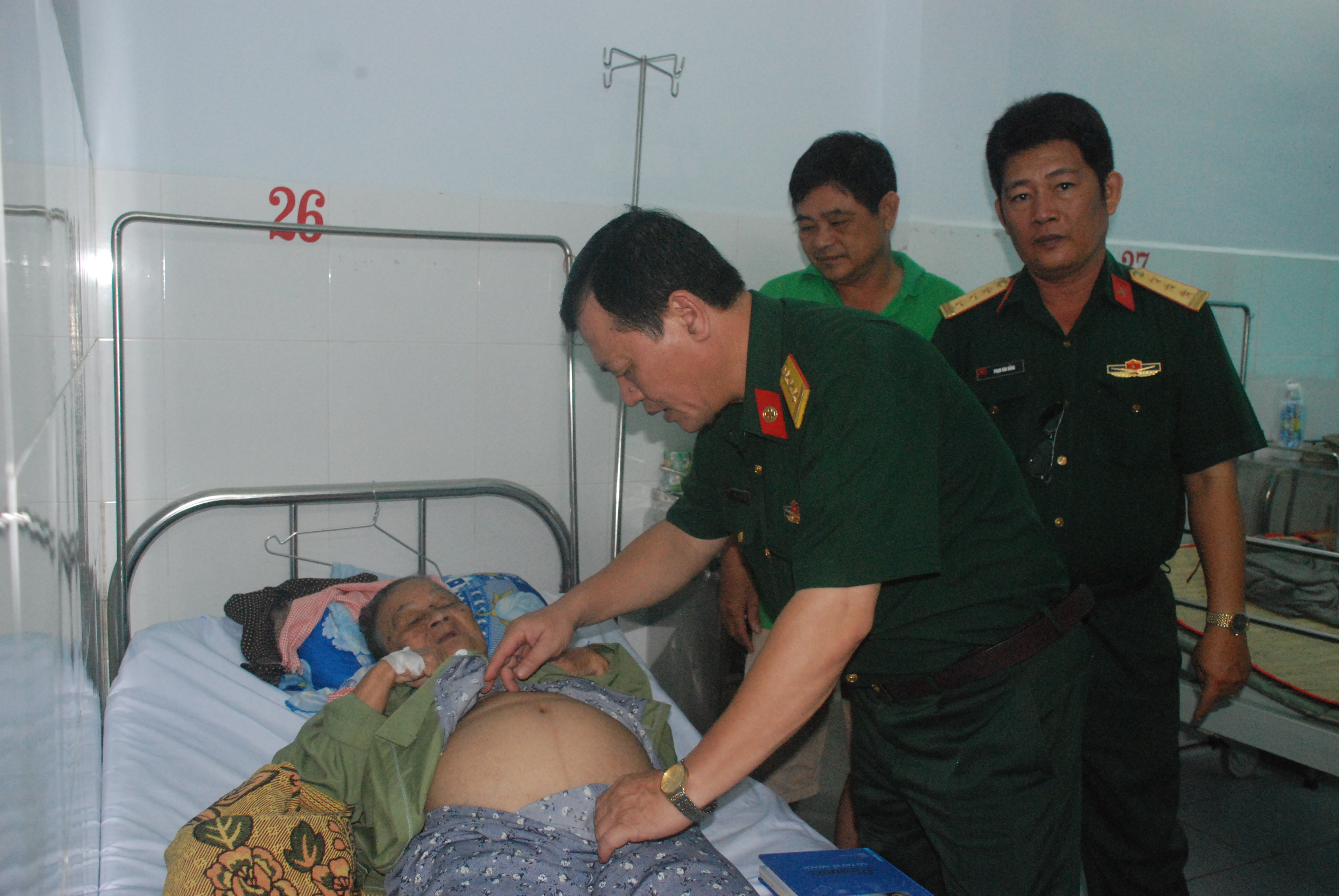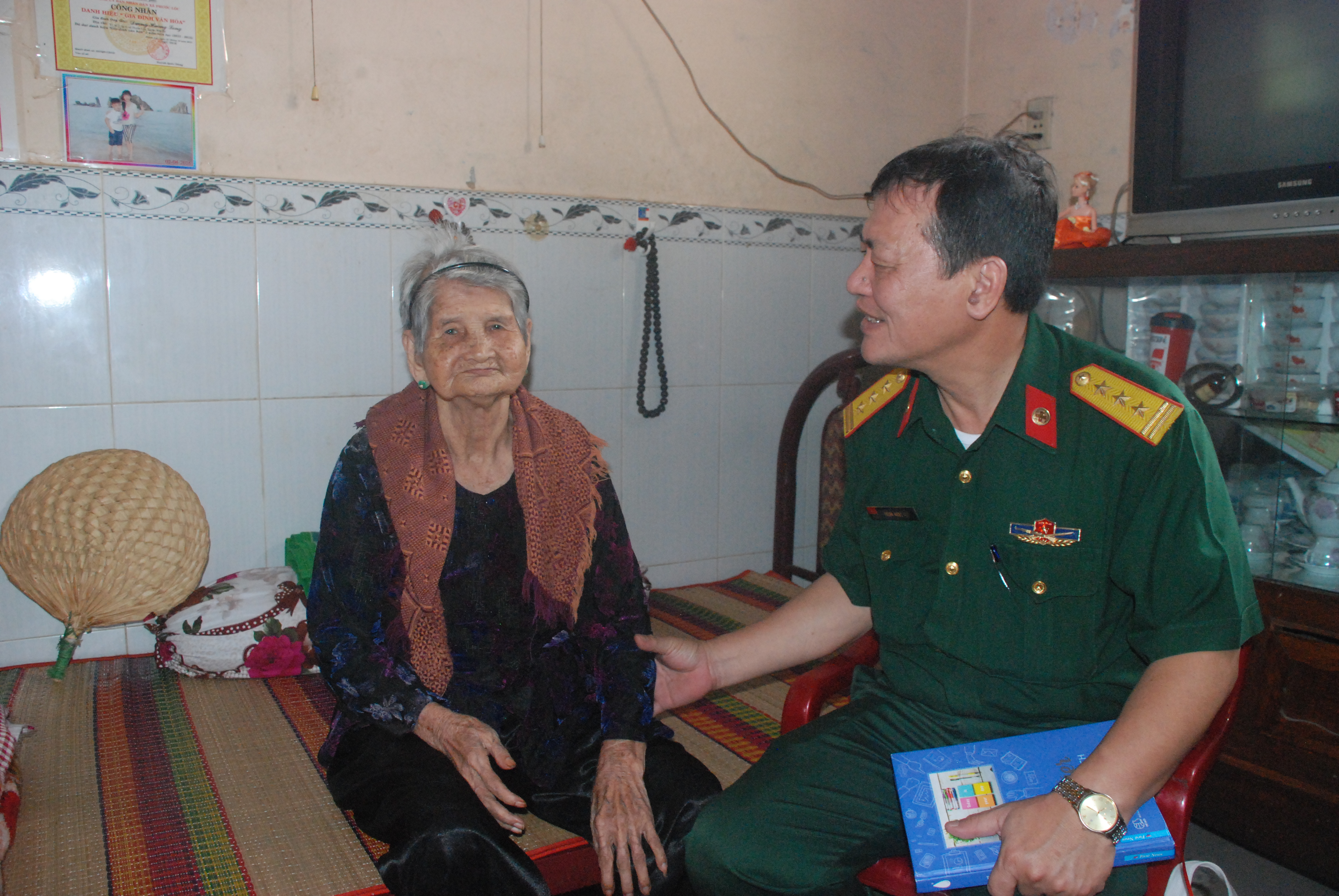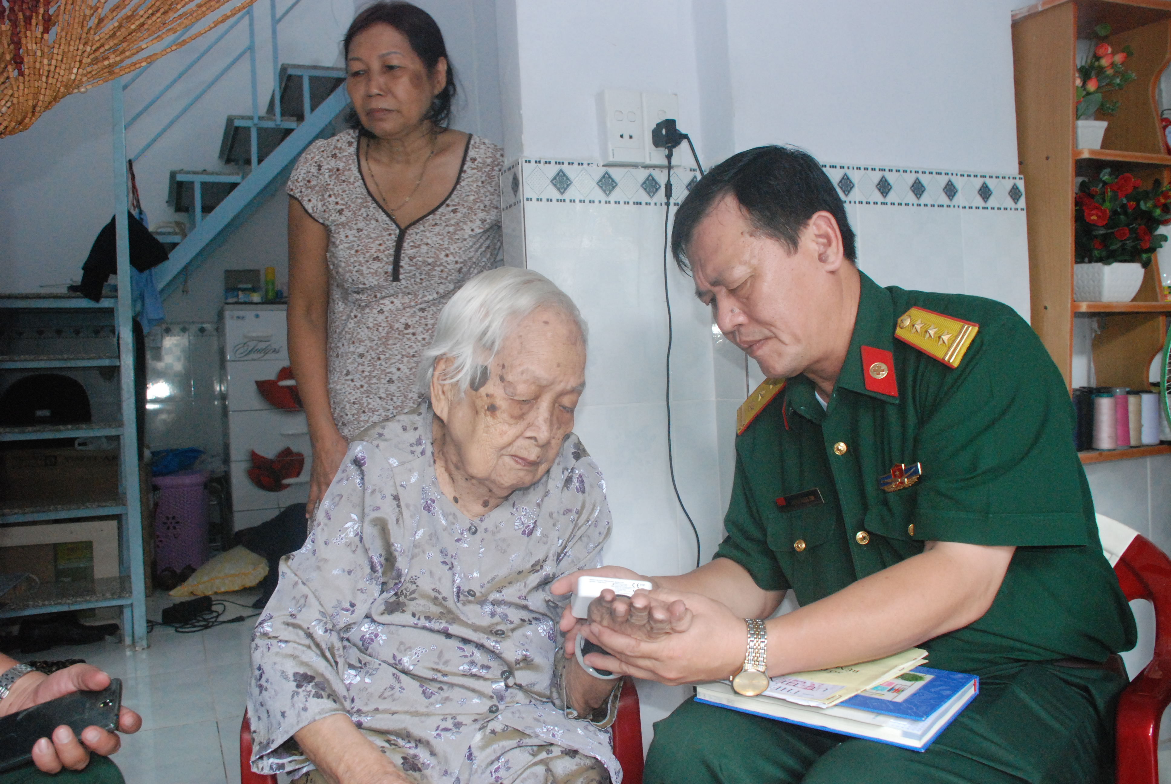 Thượng tá, bác sĩ Trịnh Ngọc Chí, Phó Giám đốc, Bí thư Đảng ủy Bệnh viện đến thăm hỏi, tặng quà các mẹ Việt Nam anh hùng