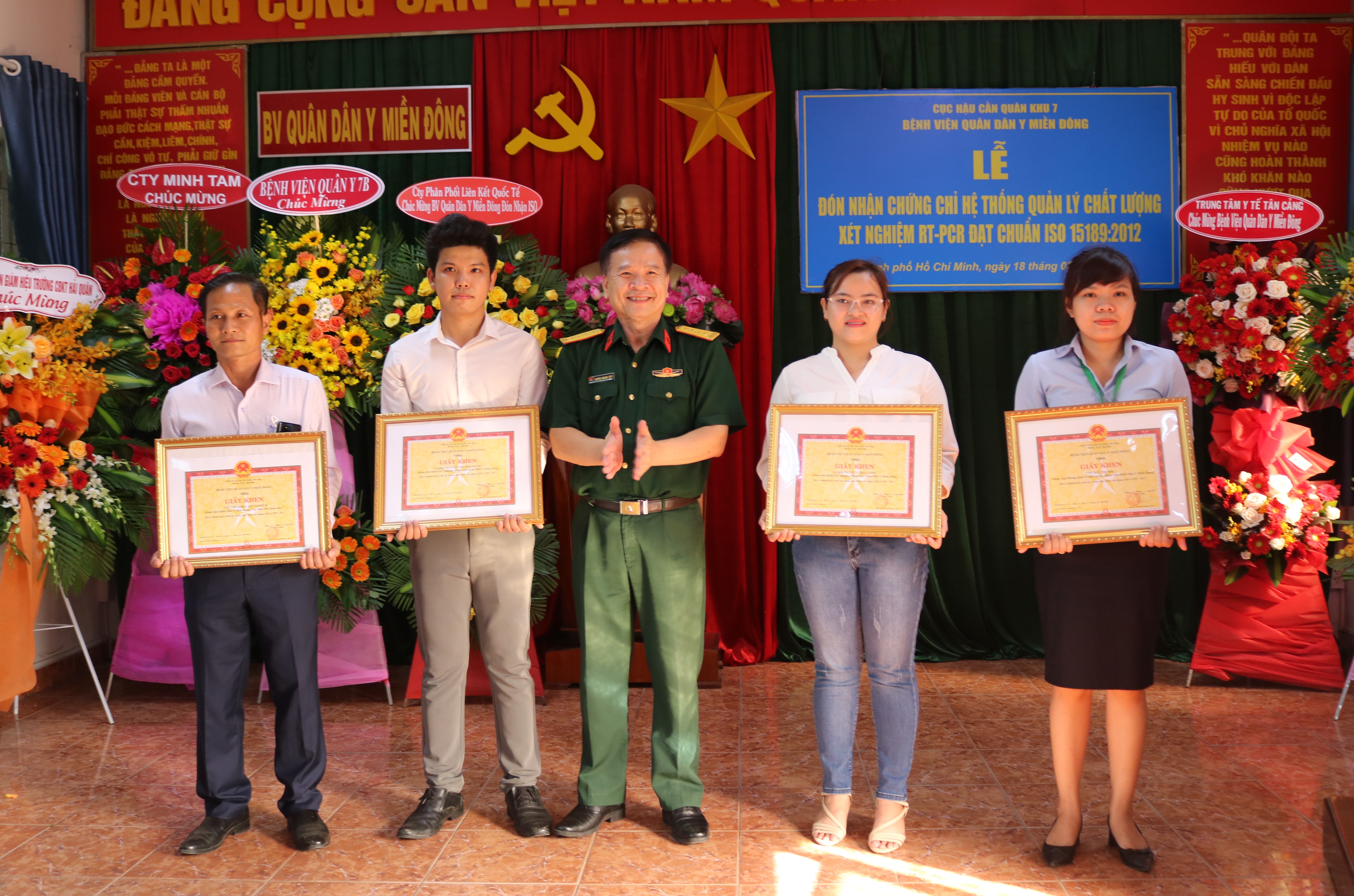 Đại tá Trương Hoàng Việt, Giám đốc bệnh viện tặng bằng khen cho các tập thể, cá nhân có thành tích trong xây dựng ISO.