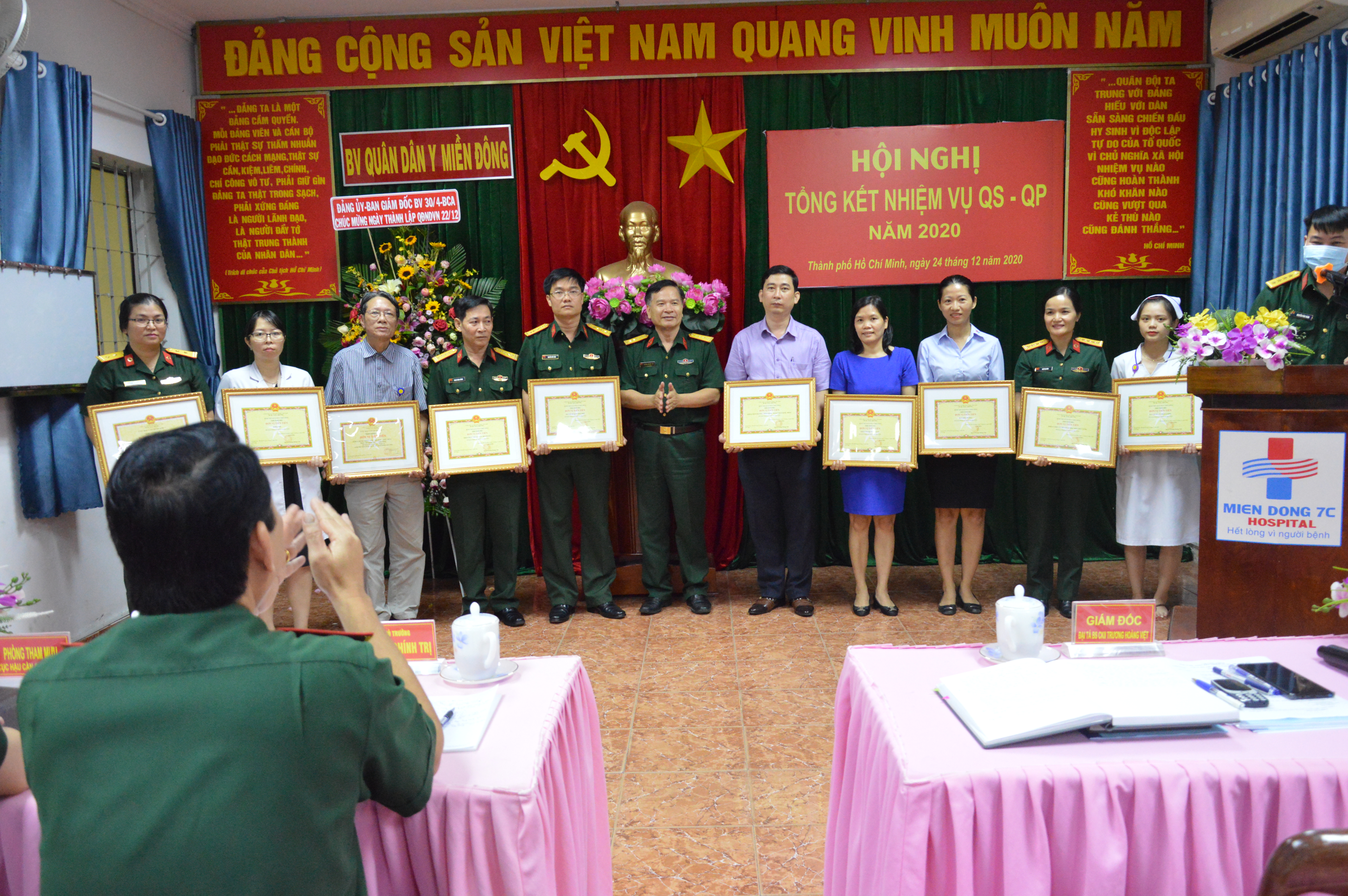 Nhân dịp này, Bệnh viện Quân dân y miền Đông trao tặng danh hiệu cho 21 đơn vị tiên tiến, 12 Chiến sĩ thi đua và 7 Chiến sĩ tiên tiến có thành tích xuất sắc trong Phong trào Thi đua Quyết thắng và trong thực hiện nhiệm vụ quân sự, quốc phòng năm 2020.