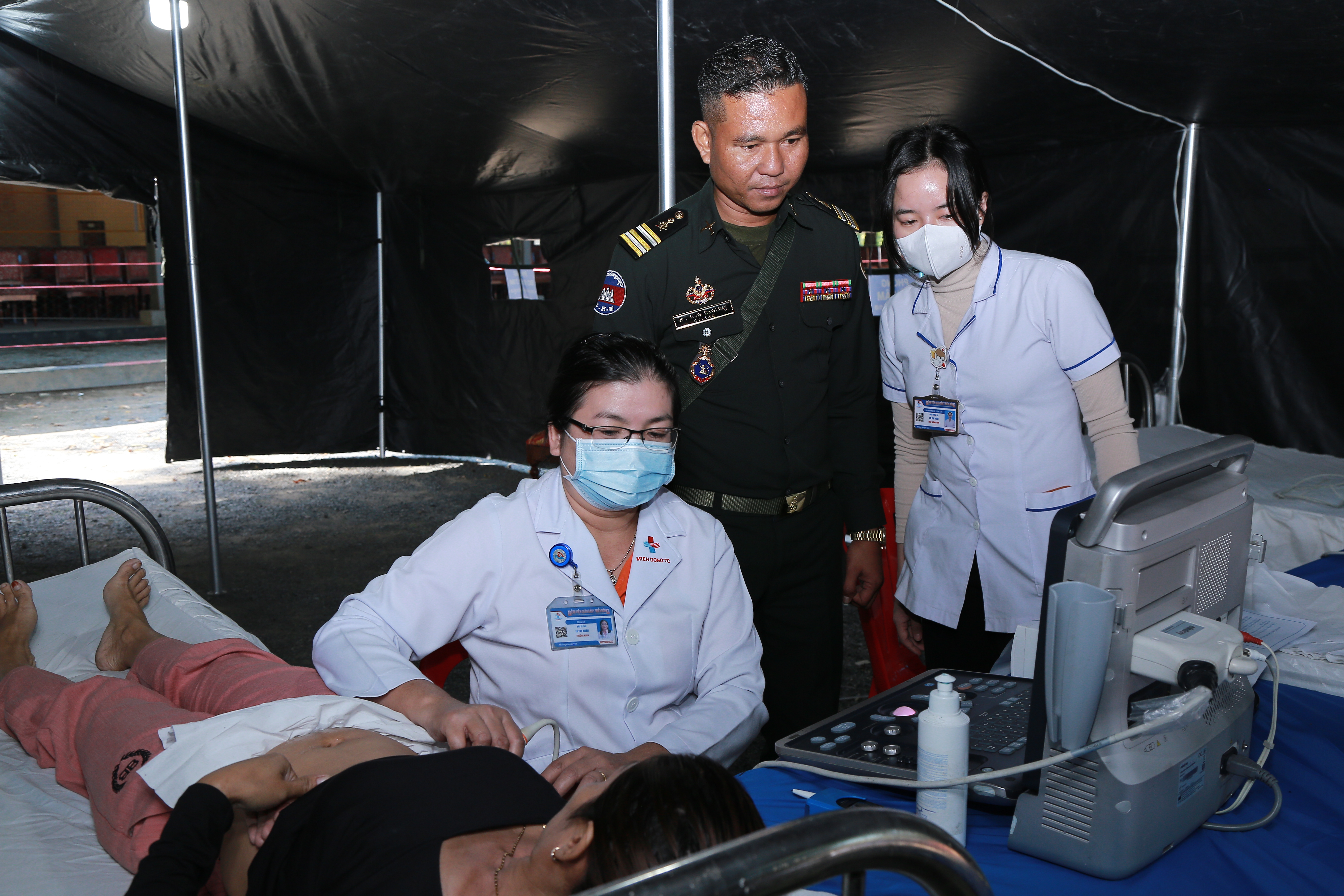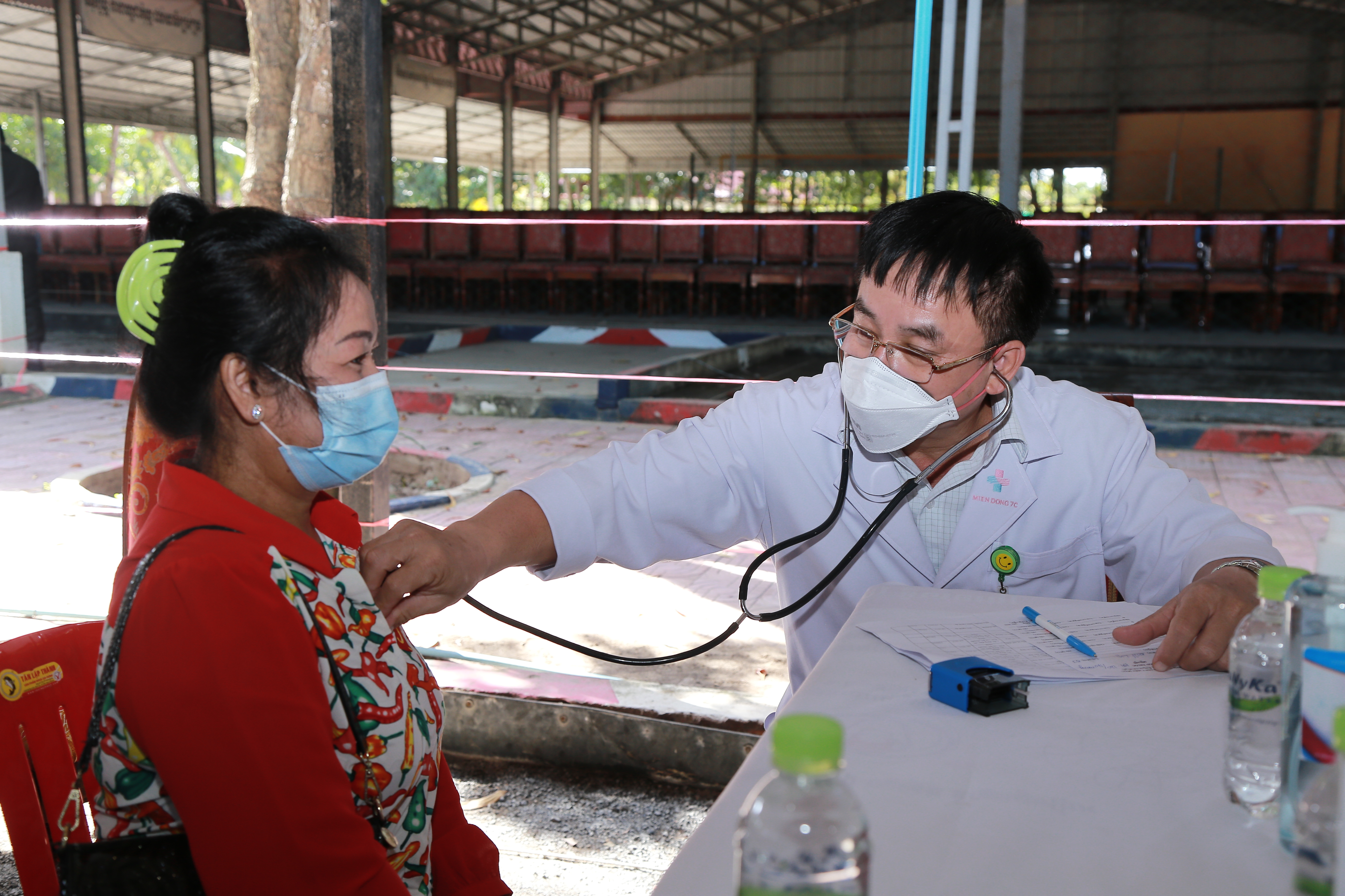 Với Bệnh viện Quân dân y miền Đông đây là lần thứ 2 đơn vị tổ chức khám bệnh, cấp thuốc, tặng quà người dân phường Ta Khmau, thành phố Khmau, tỉnh Kandal. Tuy là thành phố giáp với Thủ đô Phnôm Pênh nhưng đời sống người dân còn rất nhiều khó khăn, nhất là sau đại dịch Covid-19. Hiện nay phường Ta Khmau đại đa số người dân là lao động nghèo, chủ yếu mưu sinh bằng nghề làm thuê, chạy xe,… vì vậy ít có cơ hội được tiếp xúc với các dịch vụ y tế, chăm sóc sức khỏe. Thấu hiểu những khó khăn vất vả của bà con, trong chuyến công tác, Bệnh viện Quân dân y miền Đông đã cử đội ngũ y bác sĩ chuyên khoa đầu ngành, nhiều kinh nghiệm cùng các loại vật chất, thiết bị y tế hiện đại, thuốc men, quà tặng đến khám, chuẩn đoán bệnh, tư vấn sức khỏe cho Nhân dân.