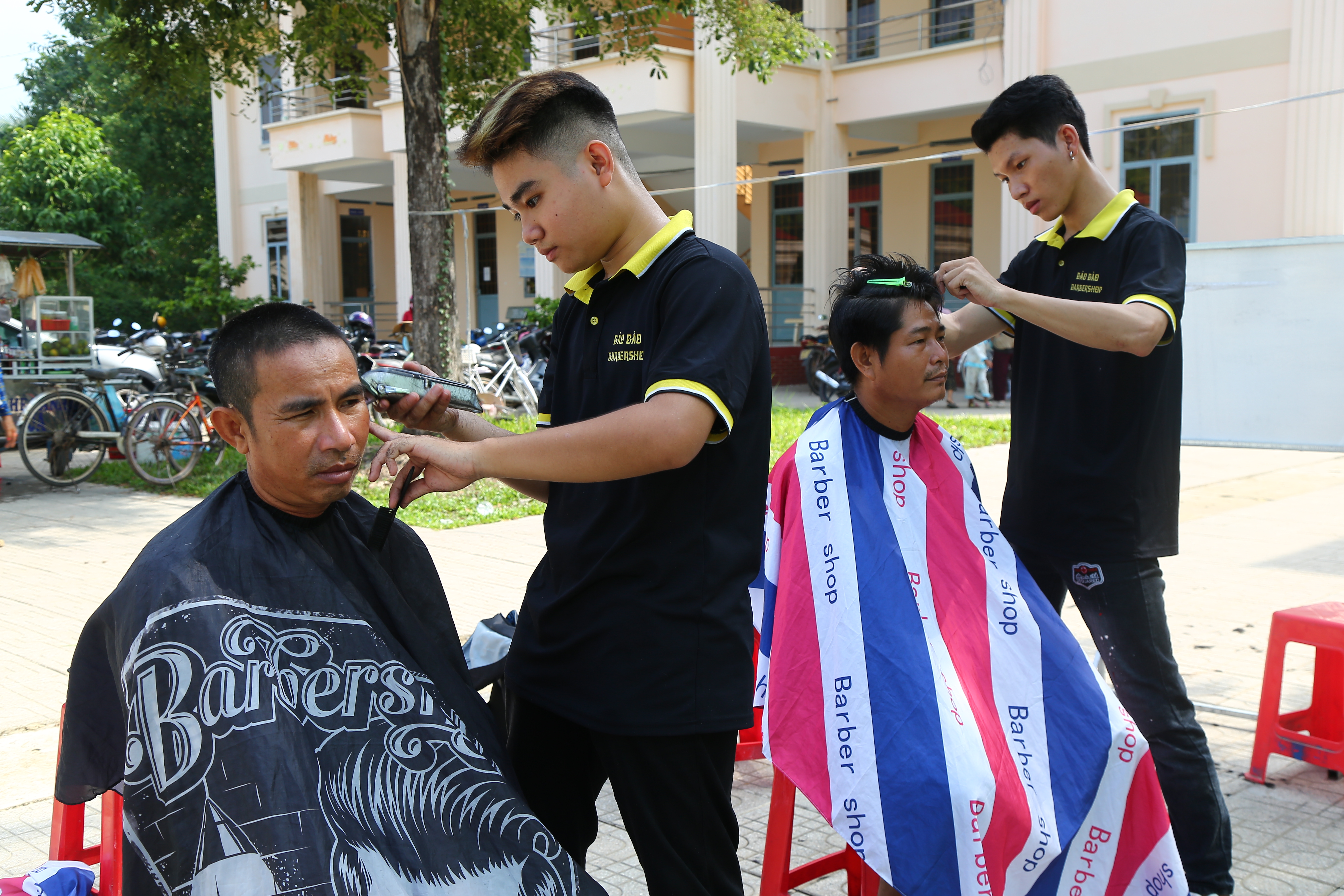 Không chỉ quan tâm chăm sóc sức khỏe, Bệnh viện Quân dân y miền Đông còn phối hợp với các đơn vị cắt tóc từ thiện cho Nhân dân.