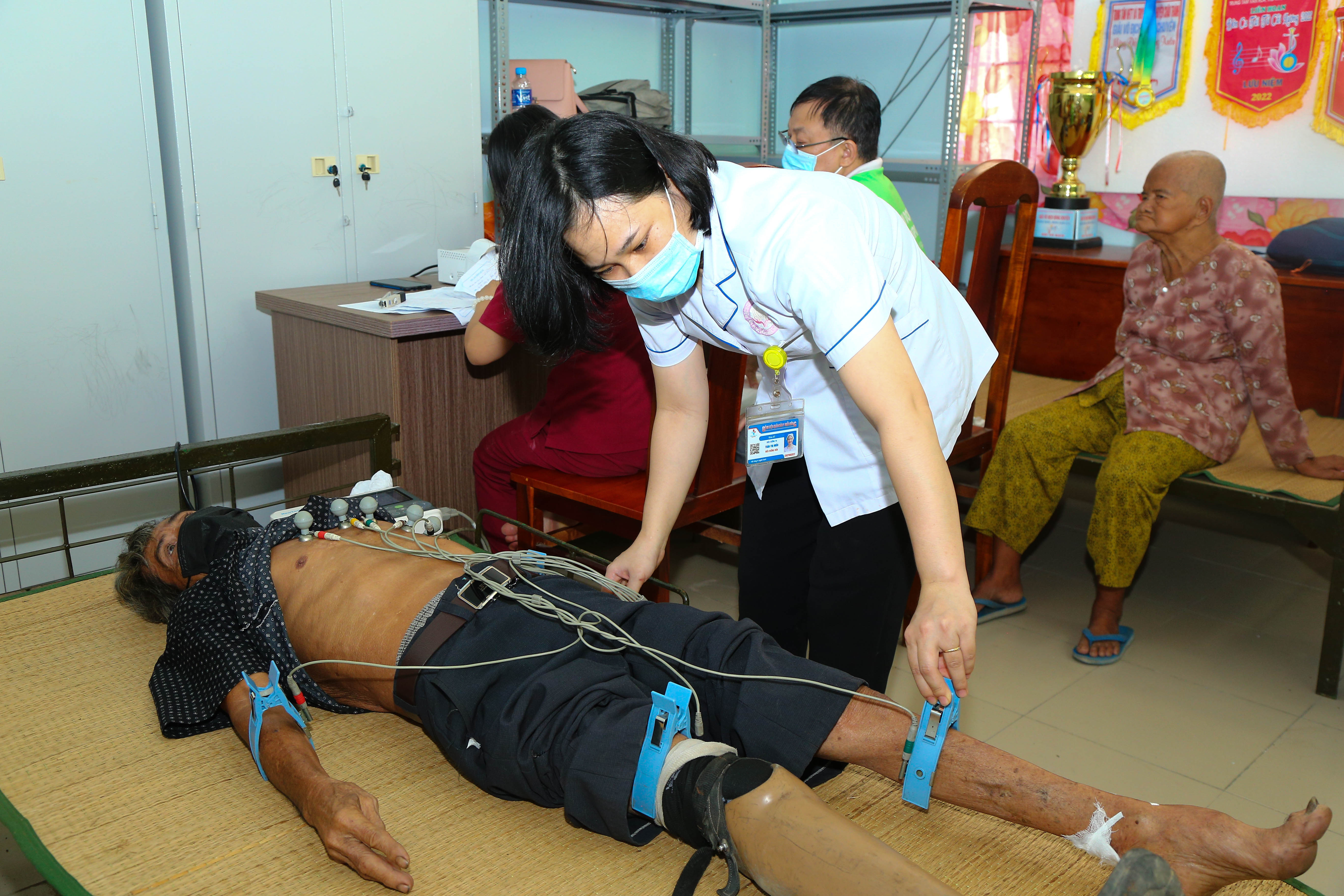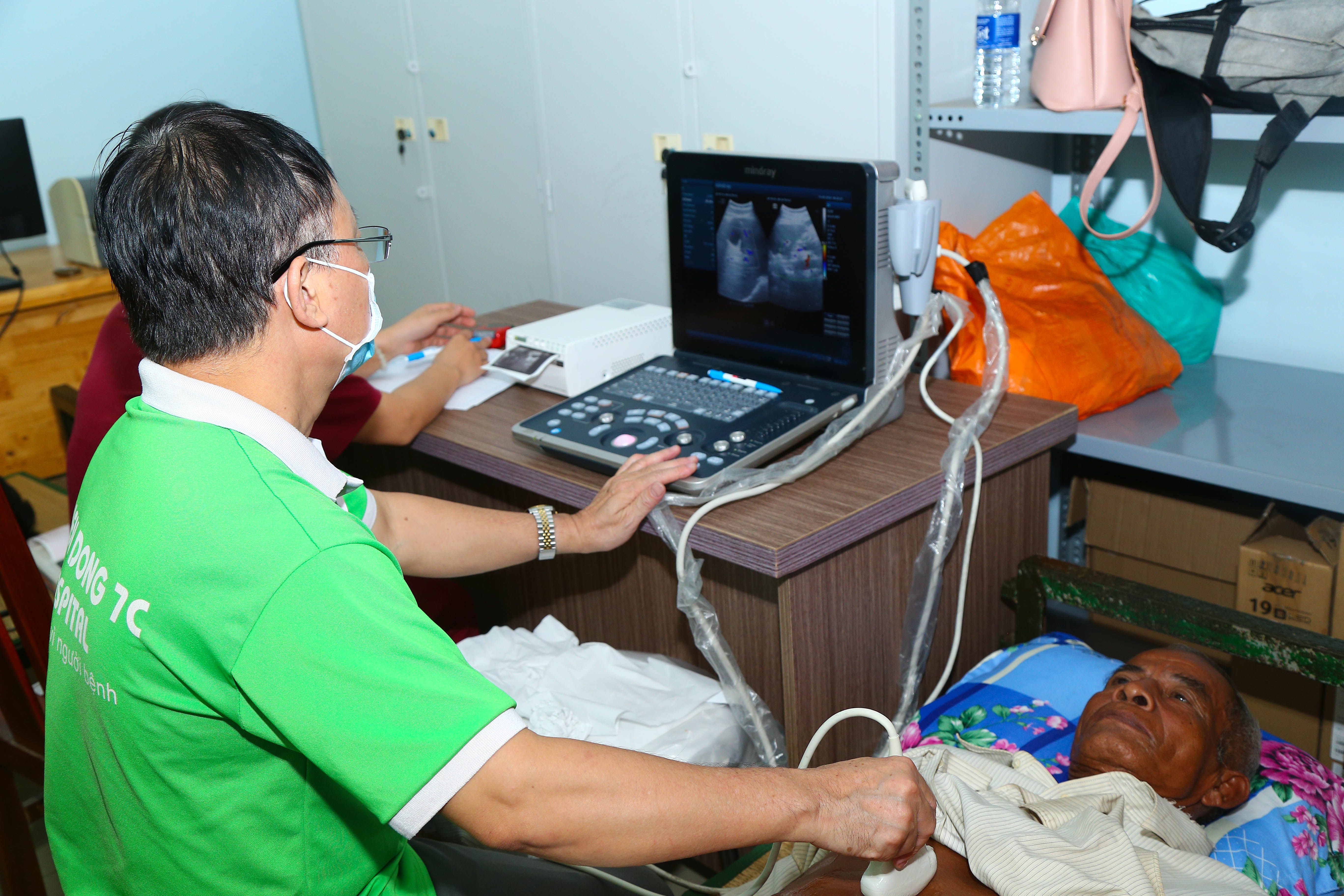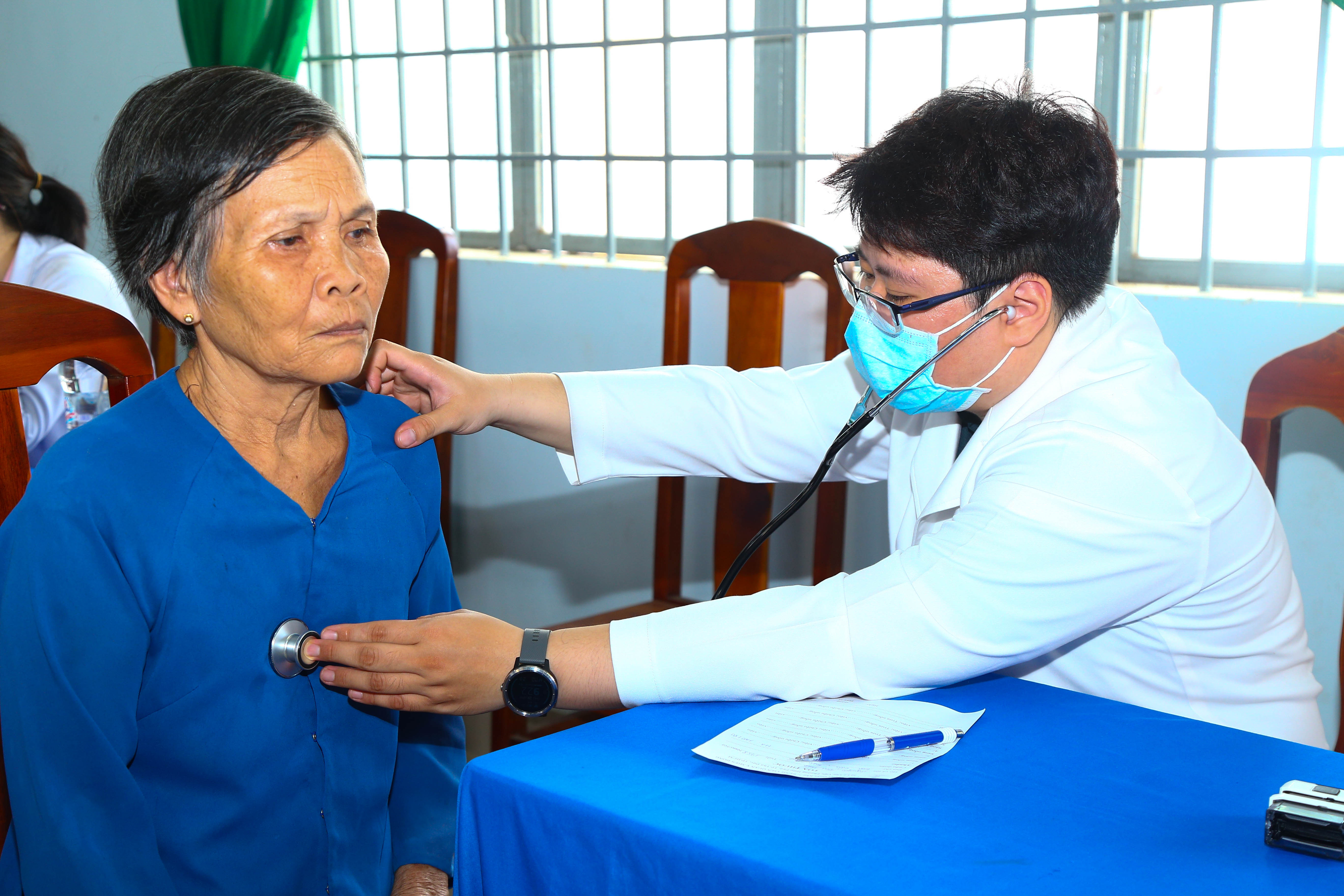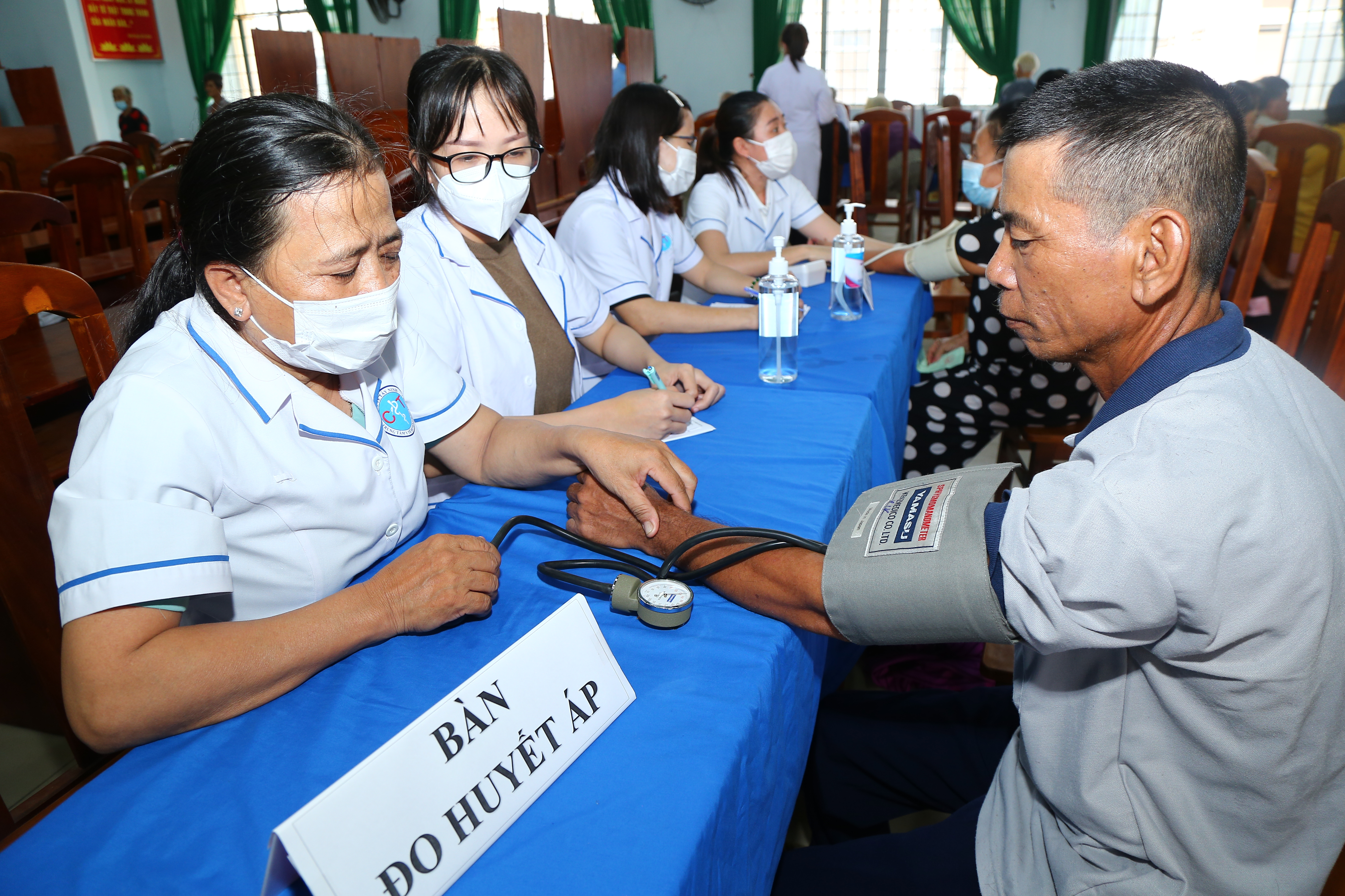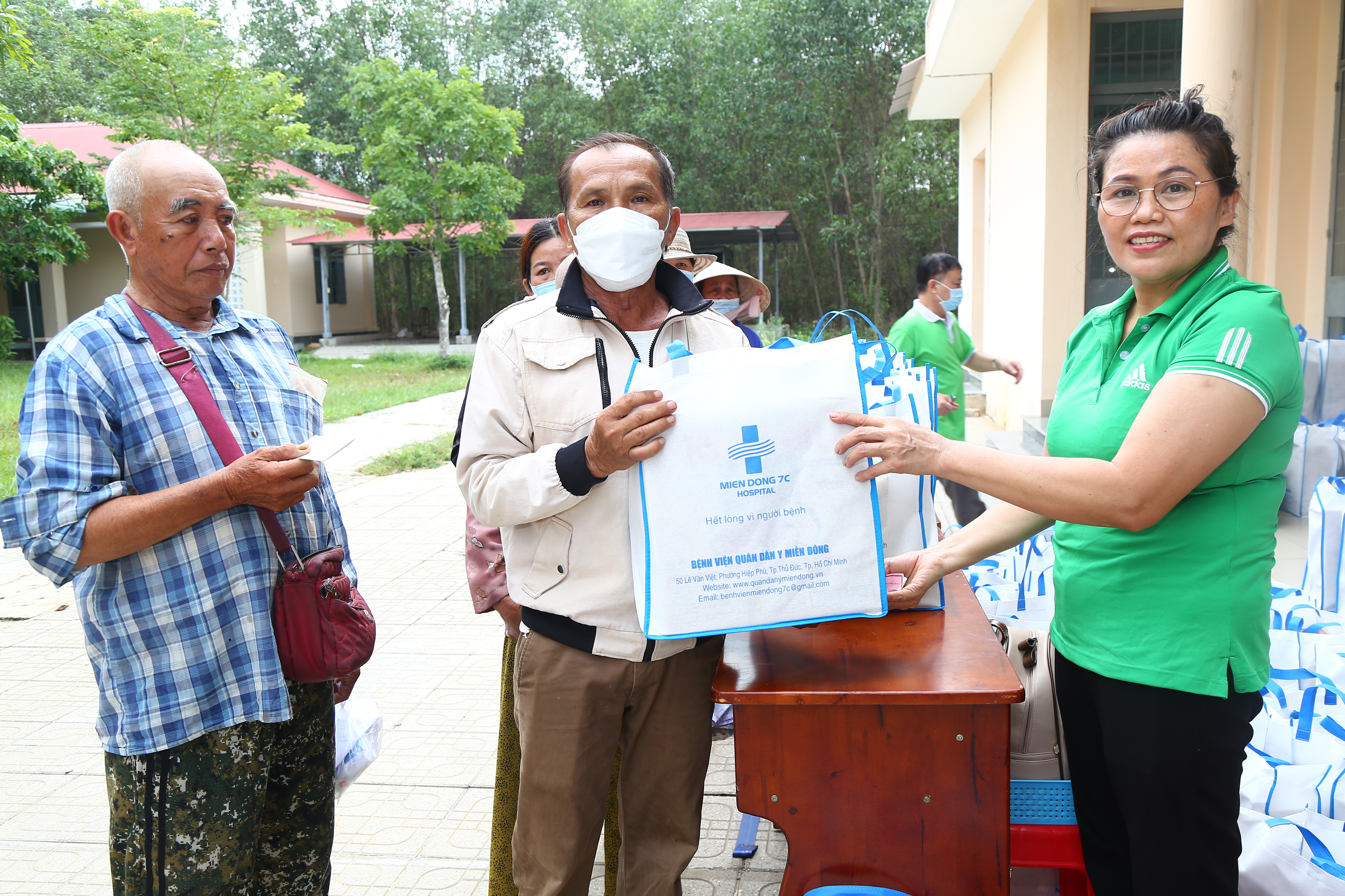 Bệnh viện Quân dân y miền Đông cử đội ngũ y, bác sĩ có chuyên môn tốt cùng trang thiết bị y tế hiện đại để khám bệnh, chẩn đoán, cấp phát thuốc cho hơn 300 lượt người. Dù số lượng bệnh nhân đông, nhưng tại các khâu từ đăng ký, khu vực đo huyết áp, phòng khám tổng quát, điện tim, siêu âm đến bộ phận cấp phát thuốc đều được các y, bác sĩ thực hiện tận tình, chu đáo.