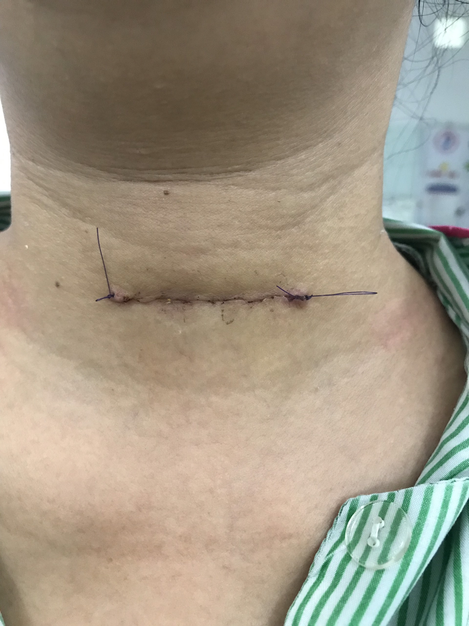 Cô M. cho biết: “Lúc đầu vào viện tôi rất lo lắng, nhưng sau khi được bác sĩ tư vấn nhiệt tình, tôi yên tâm đặt niềm tin vào bác sĩ. Sau khi mổ, tôi không cảm thấy đau nhiều, sau 2 ngày uống sữa, tôi có thể ăn uống bình thường. Sức khỏe ổn định, không nói nhịu, vết mổ khô được khâu thẩm mỹ và liền sẹo tốt. Sau 7 ngày phẫu thuật, bác sĩ cho tôi cắt chỉ để xuất viện”.