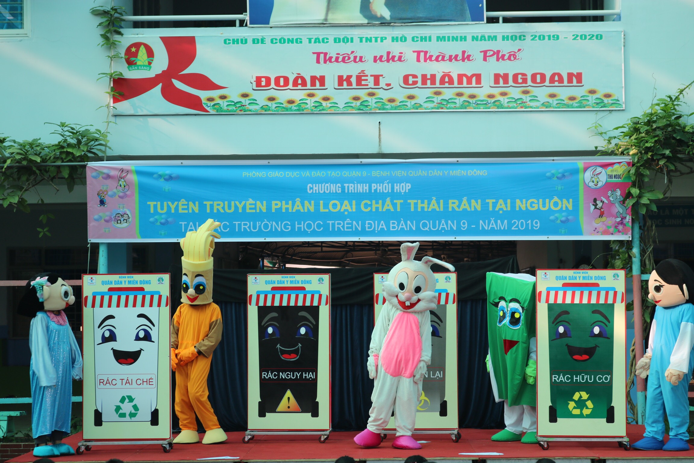 Trong chương trình, đội múa rối Thỏ Ngọc của Bệnh viện Quân dân y miền Đông đã tổ chức nhiều trò chơi, đố vui, mang lại nhiều tiếng cười và kiến thức bổ ích cho các em học sinh. Bên cạnh đó, các em còn được xem các tiết mục biểu diễn múa rối về tác hại của việc xả rác bừa bãi gây ô nhiễm mỗi trường và phân loại đúng các loại rác thải ngay tại trường học như rác tái chế; rác hữu cơ; rác nguy hại; các loại rác còn lại.