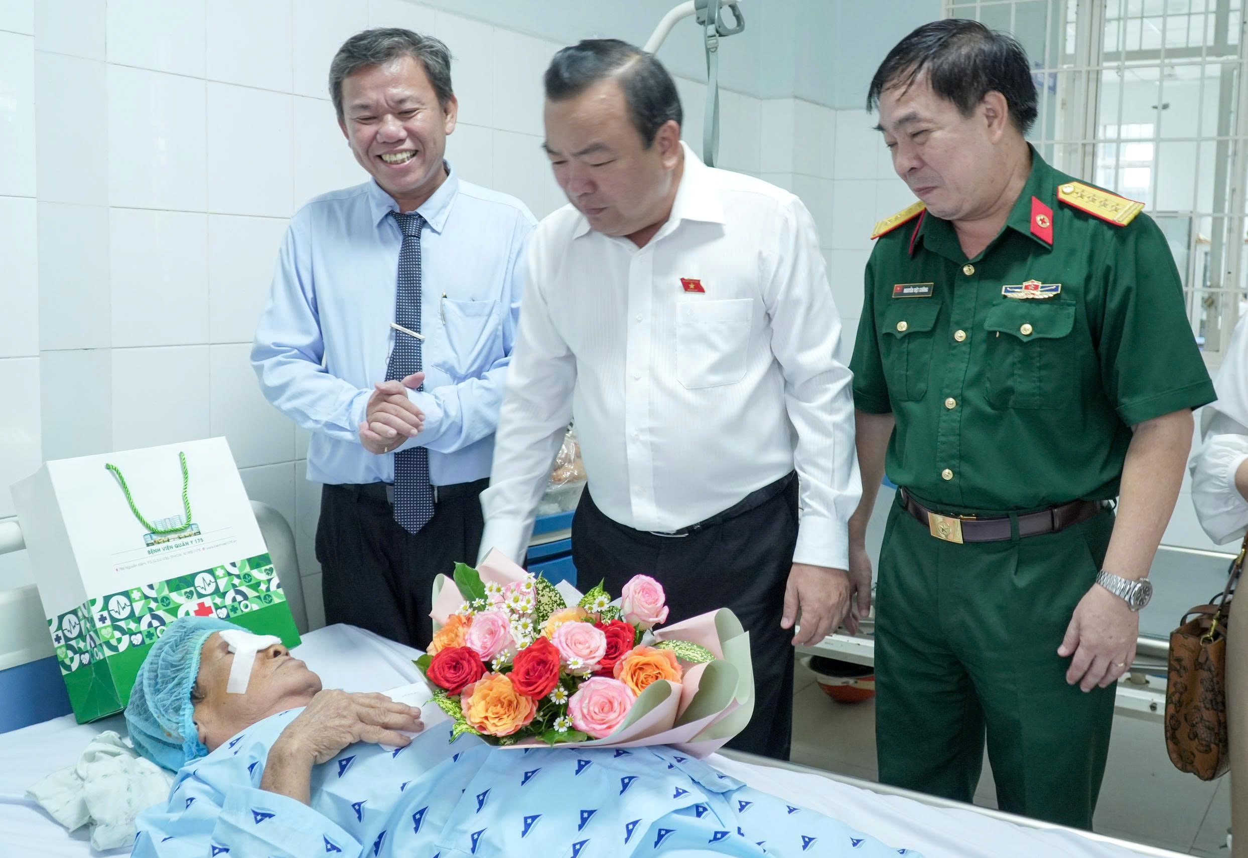 Lãnh đạo Bệnh viện Quân y 175, địa phương, đơn vị đồng hành thăm hỏi, tặng quà, động viên người dân sau phẫu thuật mắt.