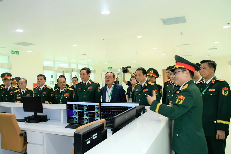 Các đồng chí lãnh đạo, nguyên lãnh đạo Bộ Quốc phòng cùng đại biểu tham quan Tòa nhà Bệnh viện Đa khoa 1.000 giường, Bệnh viện Quân y 175.