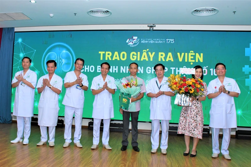 Ban Giám đốc Bệnh viện Quân y 175 trao giấy ra viện cho bệnh nhân ghép thận số 100.
