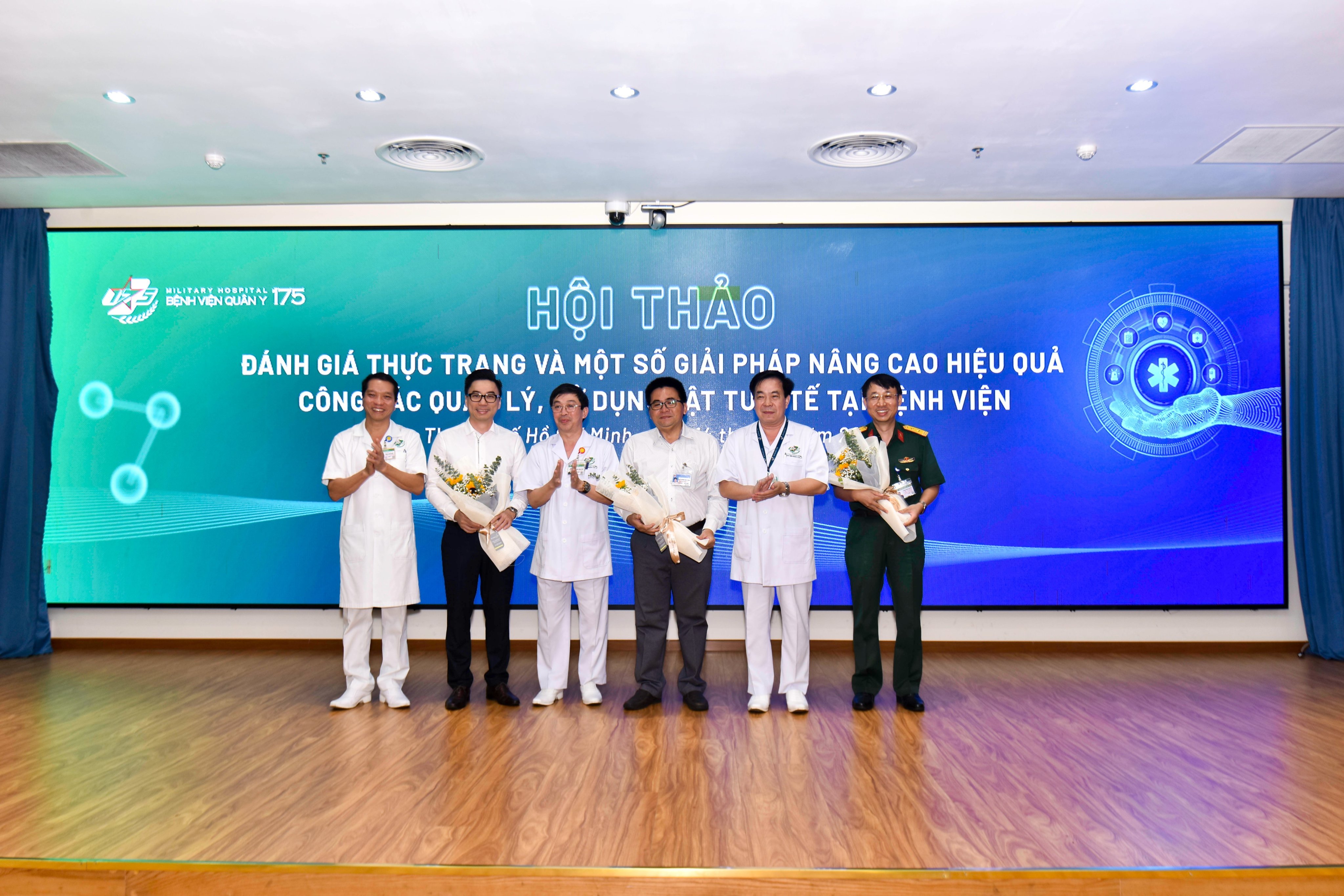 Lãnh đạo Bệnh viện Quân y 175 trao hoa tri ân các chuyên gia tham gia hội thảo.