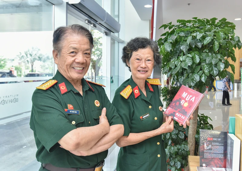 Thiếu tướng, Tiến sĩ, Thầy thuốc Nhân dân Trần Quốc Việt, Giám đốc Bệnh viện Quân y 175 (bên phải) tìm đọc, nghiên cứu về sách.