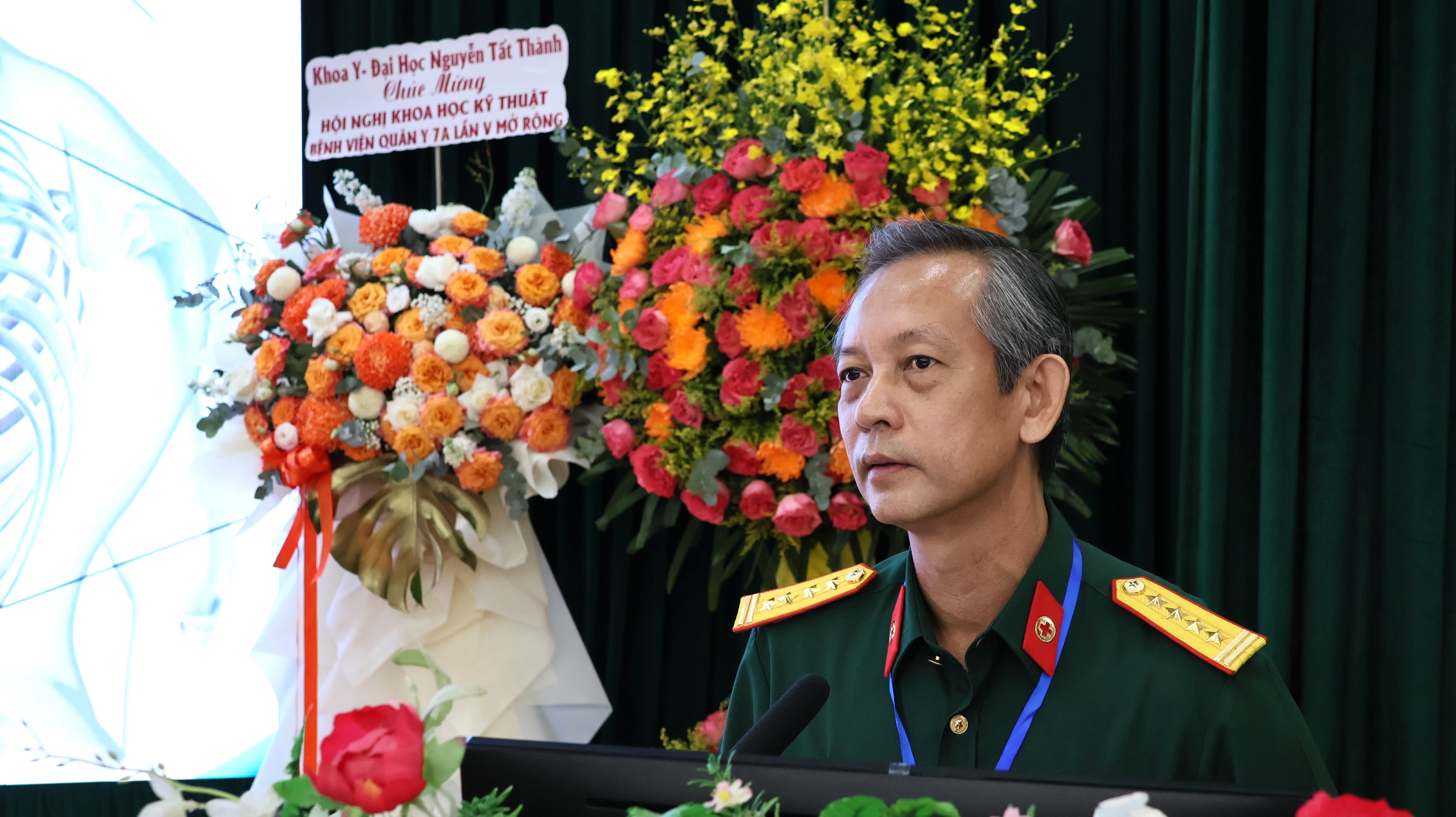 Đại tá, PGS, Tiến sĩ, Thầy thuốc Nhân dân Lê Quang Trí – Giám đốc Bệnh viện cập nhật kiến thức về điều trụ loãng xương tại hội nghị.