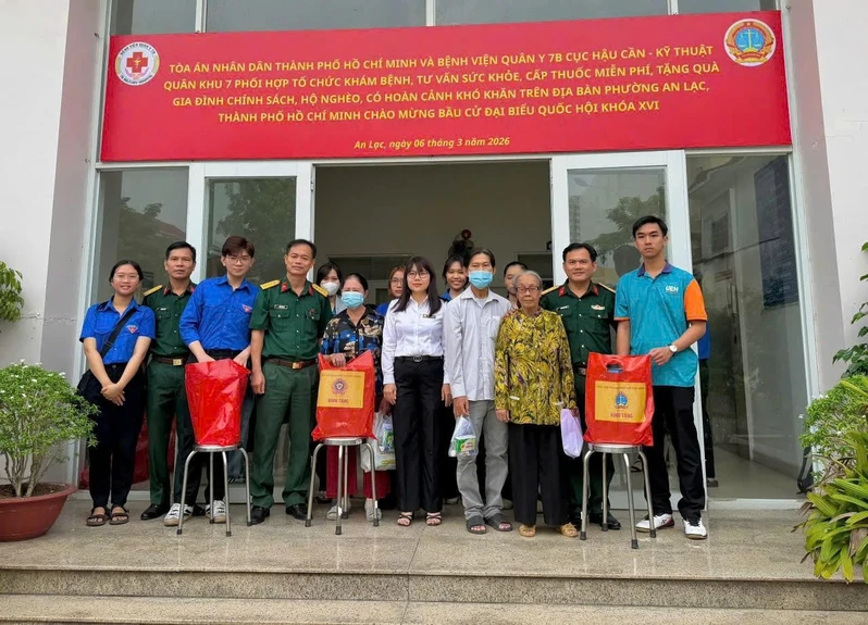(QK7 Online) -Trong hai ngày 5 và 6/3/2026, Bệnh viện Quân y 7B phối hợp với Tòa án Quân sự Trung ương, Tòa án Nhân dân Thành phố Hồ Chí Minh và cấp ủy, chính quyền địa phương tổ chức chương trình khám bệnh, tư vấn sức khỏe, cấp thuốc, tặng quà cho các gia đình chính sách, hộ nghèo, có hoàn cảnh khó khăn trên địa bàn Thành phố Hồ Chí Minh. Đây là hoạt động nhằm hướng tới chào mừng cuộc bầu cử đại biểu Quốc hội khóa XVI và bầu cử đại biểu Hội đồng nhân dân các cấp nhiệm kỳ 2026 - 2031.