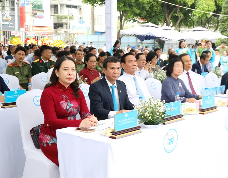 Phó Chủ tịch nước Võ Thị Ánh Xuân cùng các đồng chí lãnh đạo Đảng và Nhà nước tham dự buổi lễ.