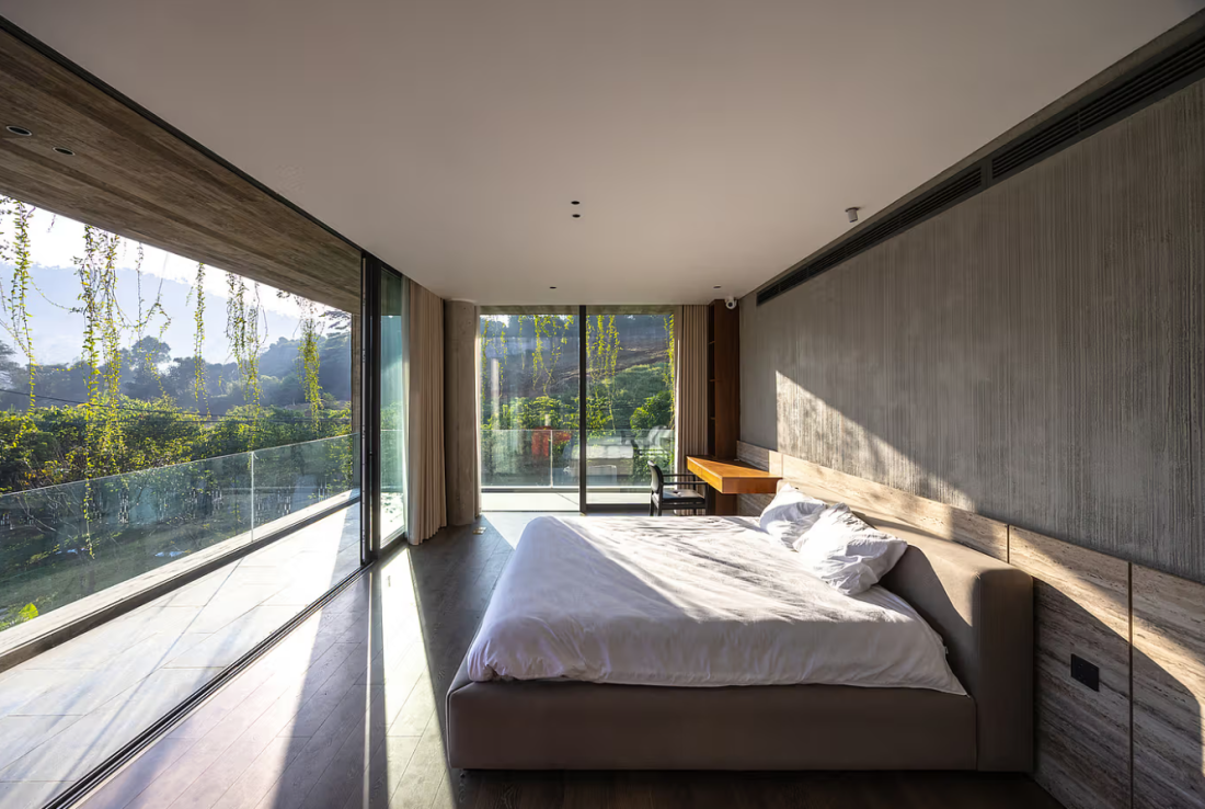 Các phòng ngủ đều có hành lang chuyển tiếp gỗ và bố trí nhà tắm, phòng thay đồ bên trong.