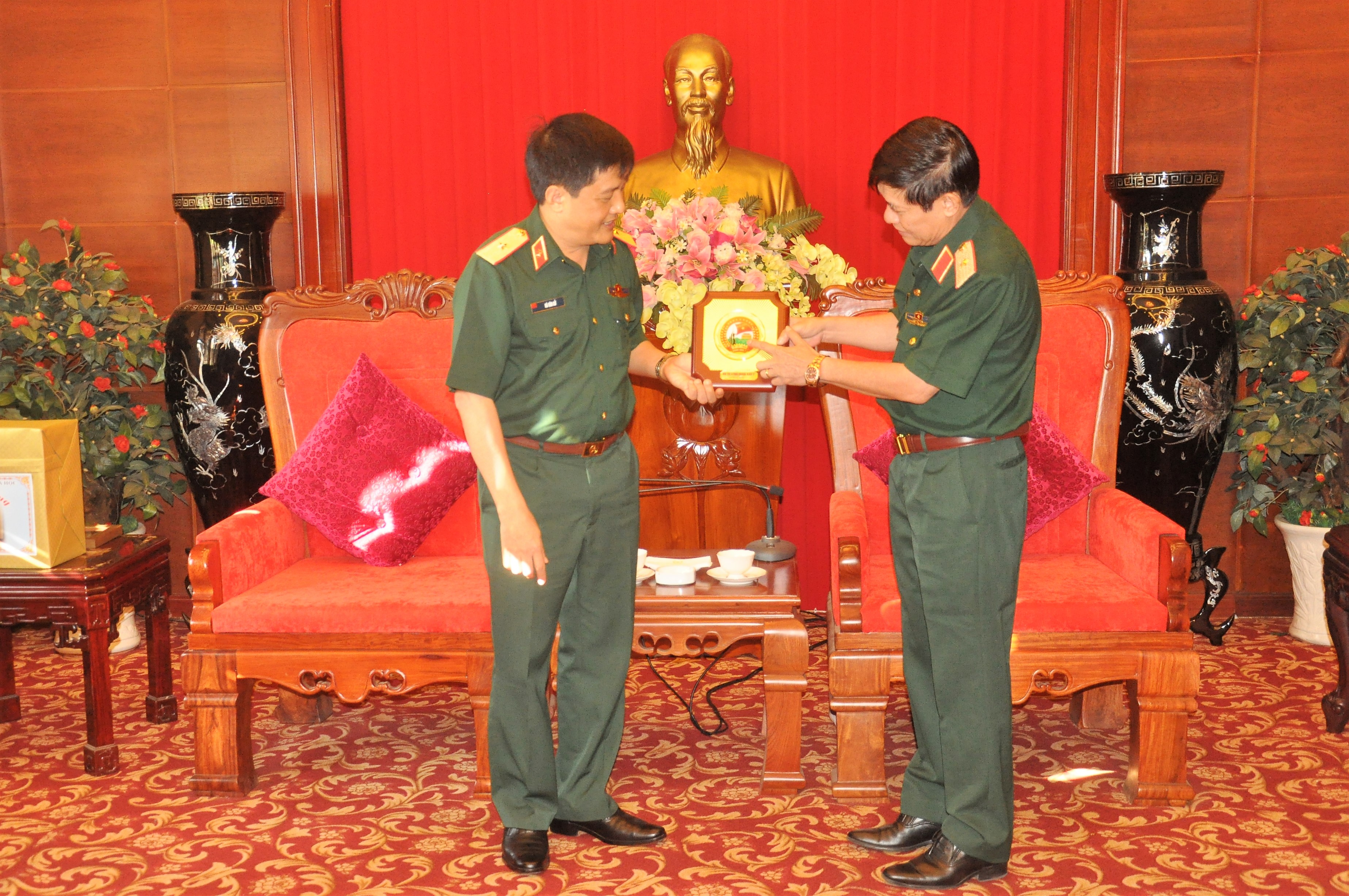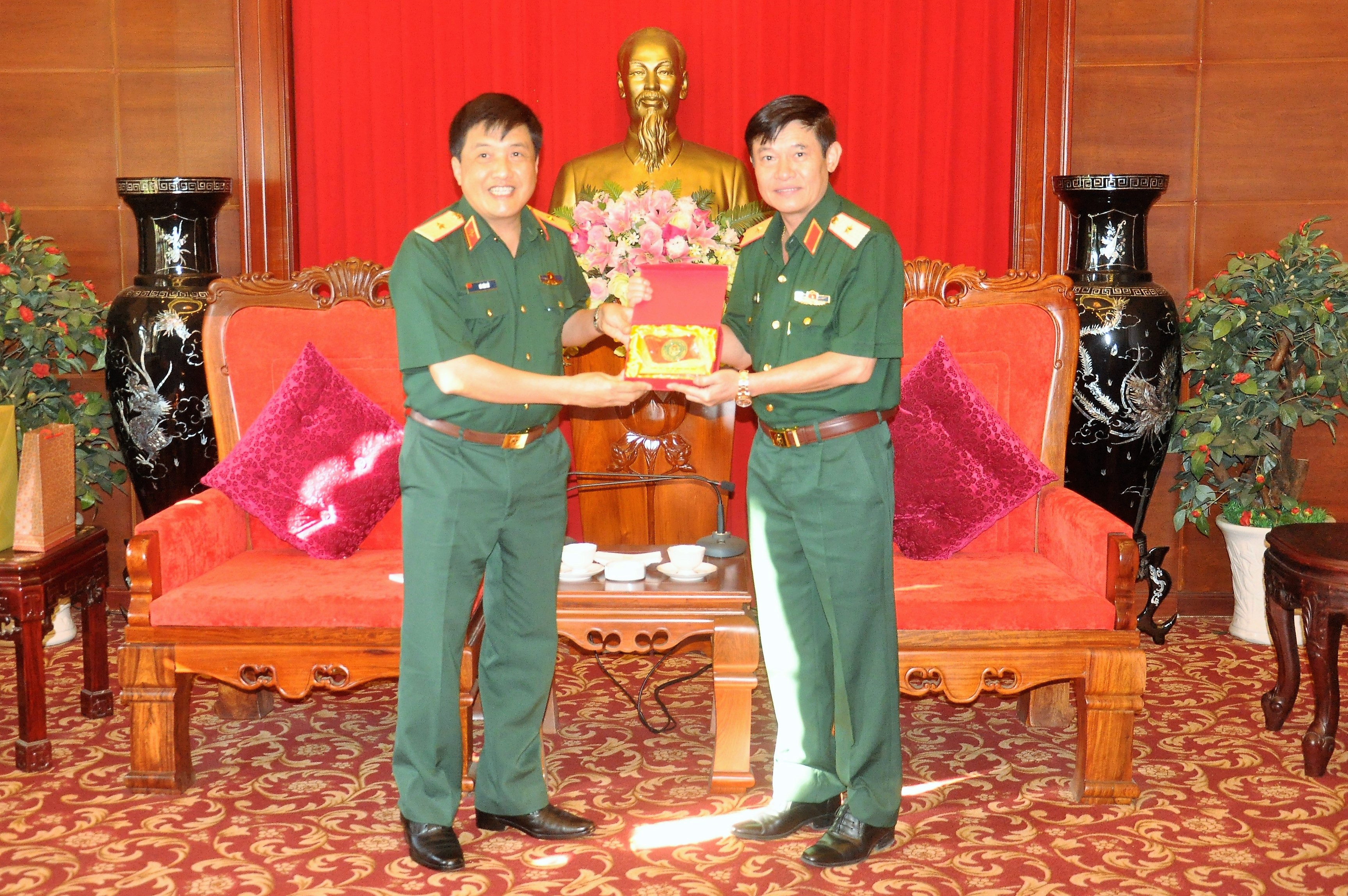 Thiếu tướng Hà Văn Cử, Tư lệnh Binh chủng Hóa học trao quà lưu niệm cho Quân khu 7