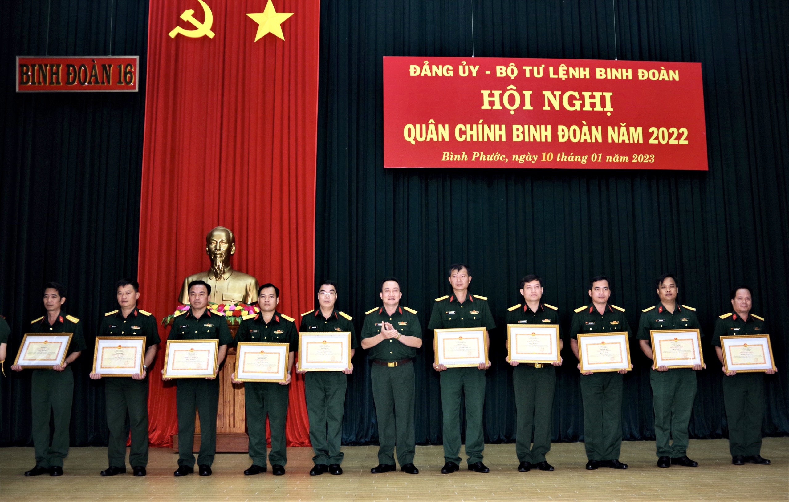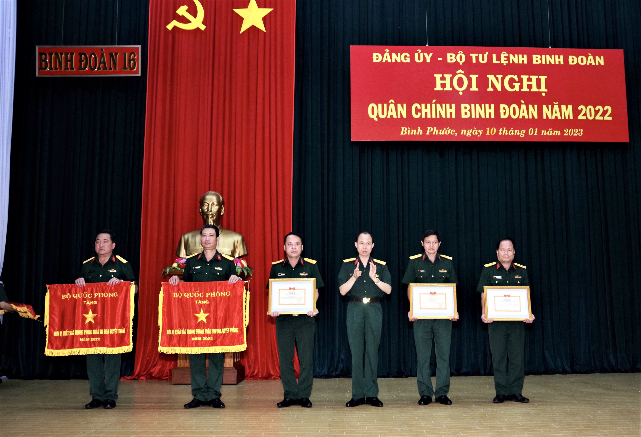Dịp này, thừa ủy quyền của Bộ trưởng Bộ Quốc phòng, Đảng ủy, Bộ Tư lệnh Binh đoàn 16 trao Cờ thi đua của Bộ Quốc phòng, đơn vị quyết thắng, tập thể lao động xuất sắc, đơn vị văn hóa, danh hiệu Chiến sĩ thi đua cấp cơ sở, tổ chức đảng hoàn thành xuất sắc nhiệm vụ năm 2022 cho 30 tập thể và cá nhân đạt thành tích xuất sắc trong các phong trào thi đua năm 2022.
