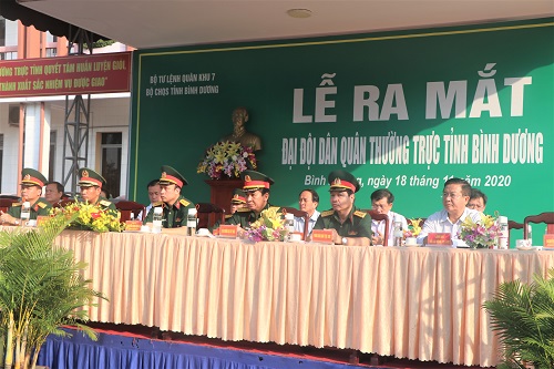 Phát biểu chỉ đạo tại buổi lễ, Thiếu tướng Đặng Văn Hùng, Phó Tư lệnh, Tham mưu trưởng Quân khu ghi nhận, đánh giá cao công tác tham mưu của Bộ CHQS tỉnh. Đặc biệt là tình cảm, sự quan tâm của cấp ủy, chính quyền tỉnh Bình Dương đối với nhiệm vụ quốc phòng địa phương nói chung và công tác xây dựng lực lượng DQTV nói riêng.