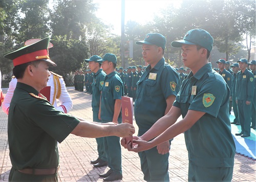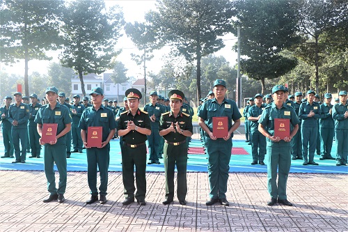 Thủ trưởng Bộ CHQS tỉnh Bình Dương trao quyết định thành lập Đại đội DQTT.