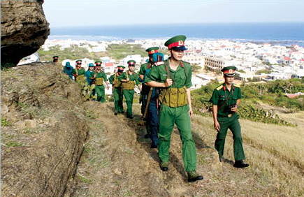 Lực lượng vũ trang huyện Phú Quý tuần tra bảo vệ địa bàn trong những ngày tết.
