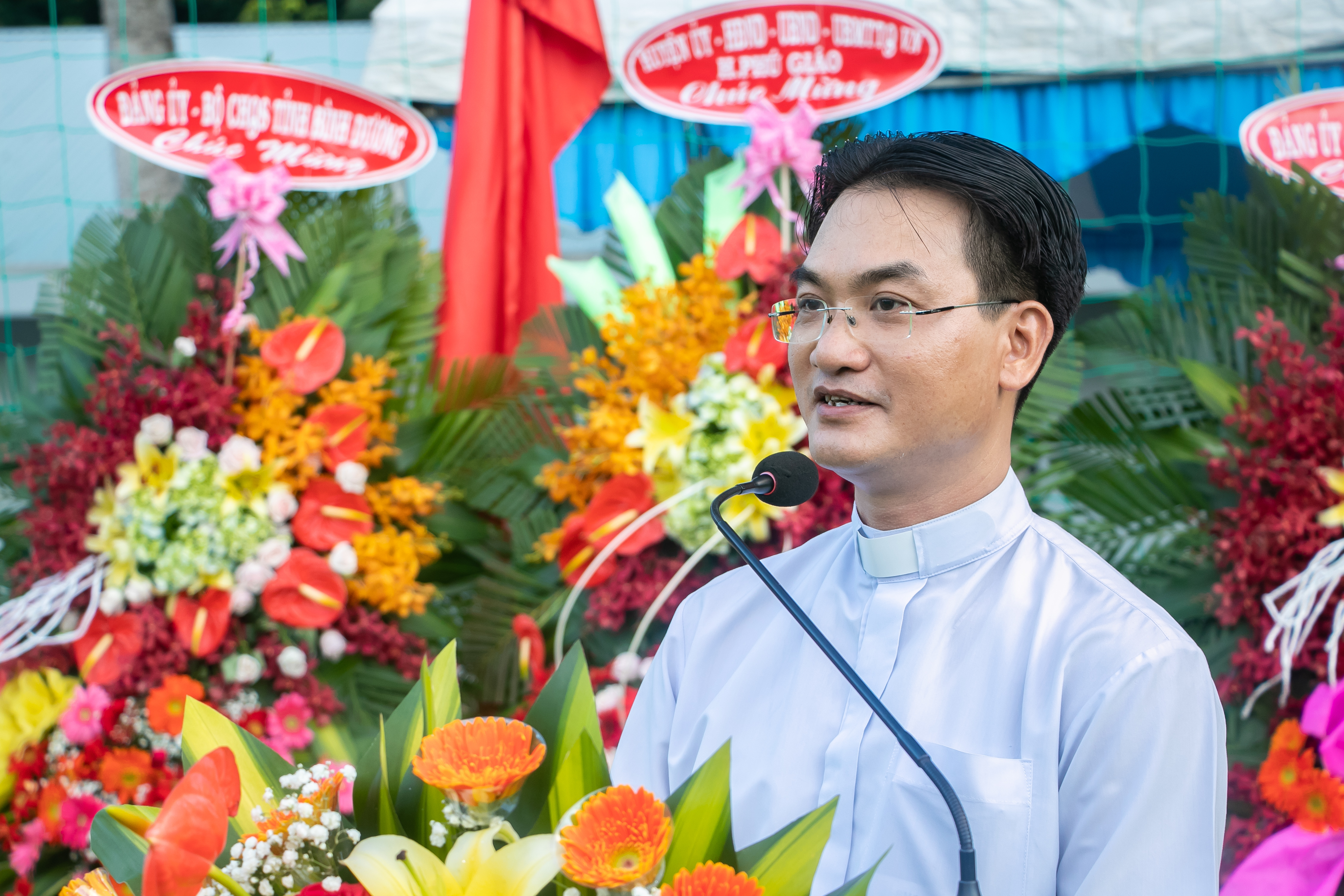 Linh mục Nguyễn Đoàn Thanh Phong, Chánh xứ Giáo xứ Lễ Trang phát biểu đáp từ.