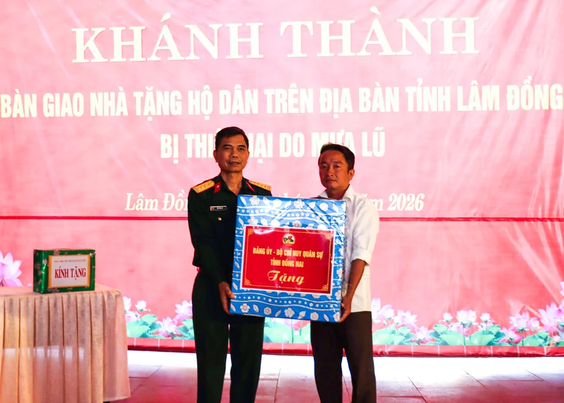 (QK7 Online) - Ngày 10/1, tại xã Cát Tiên, tỉnh Lâm Đồng, Bộ CHQS tỉnh Đồng Nai tổ chức khánh thành và bàn giao nhà tặng hộ dân trên địa bàn bị thiệt hại do mưa lũ. Chương trình bàn giao trong “Chiến dịch Quang Trung” thần tốc thực hiện giúp dân khắc phục hậu quả khắc phục thiên tai.