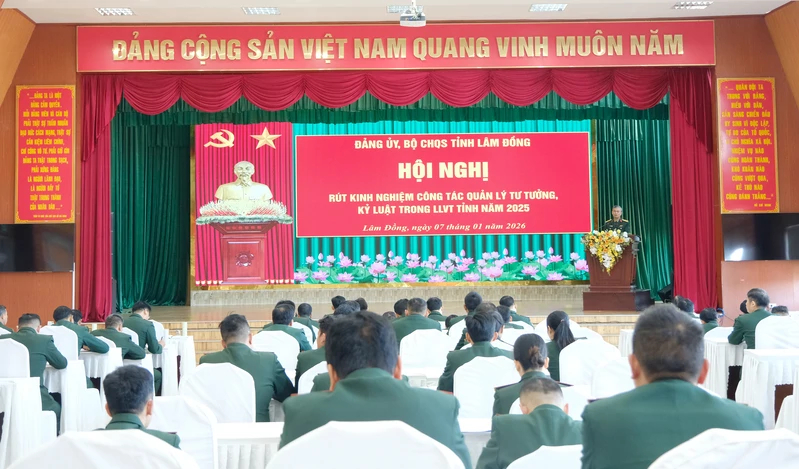 (QK7 Online) - Ngày 7/1, Bộ Chỉ huy Quân sự (CHQS) tỉnh Lâm Đồng tổ chức hội nghị rút kinh nghiệm công tác quản lý tư tưởng, kỷ luật trong lực lượng vũ trang (LLVT) tỉnh năm 2025. Đại tá Nguyễn Văn Sơn, Chính ủy Bộ CHQS tỉnh chủ trì hội nghị.