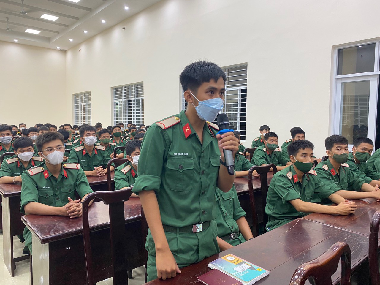 Chiến sĩ phát biểu ý kiến tại buổi đối thoại.