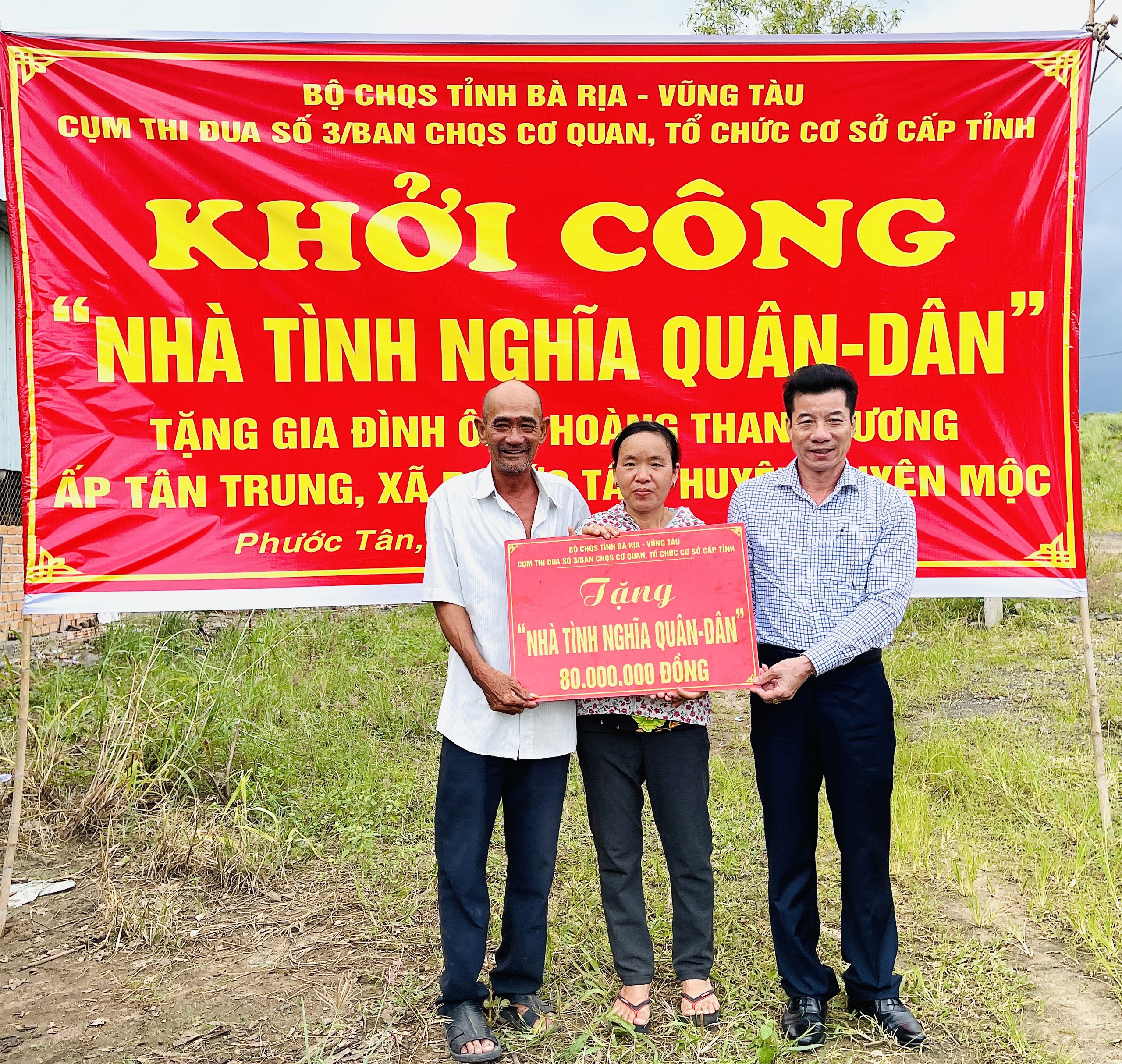 Đây là việc làm ý nghĩa, thiết thực nhằm thể hiện sự quan tâm sâu sắc của Đảng ủy, Bộ CHQS tỉnh Bà Rịa-Vũng Tàu chăm lo cho bà con Nhân dân có hoàn cảnh khó khăn về nhà ở, tạo điều kiện để gia đình ông Tương ổn định cuộc sống, vượt khó vươn lên, qua đó, thắt chặt tình đoàn kết quân - dân, tô thắm thêm hình ảnh cao đẹp “Bộ đội Cụ Hồ”.