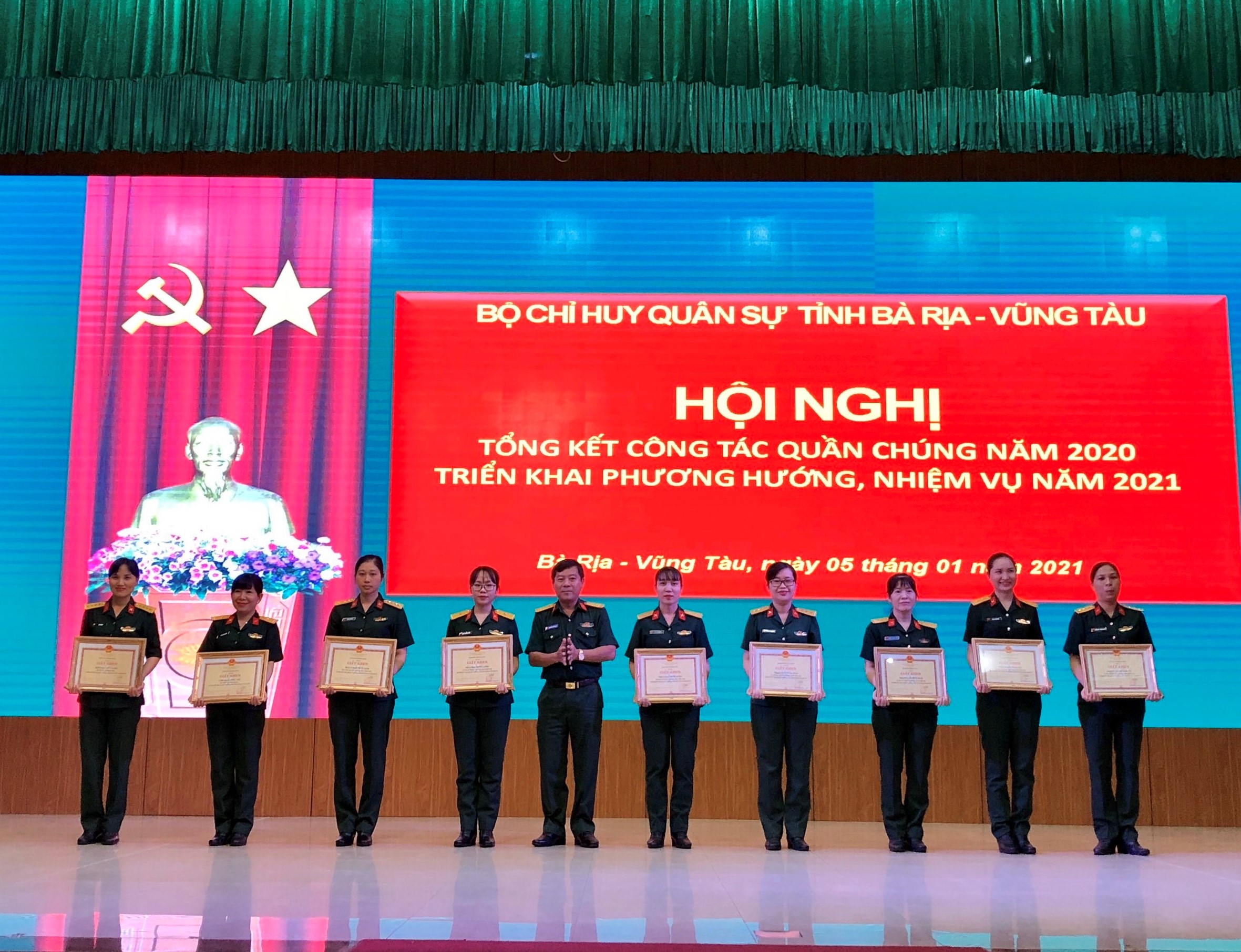 Tại hội nghị, Hội Phụ nữ Bộ CHQS tỉnh được Cục Chính trị Quân khu tặng giấy khen về công tác phụ nữ và phong trào phụ nữ năm 2020. Bộ CHQS tỉnh tặng giấy khen cho 4 tập thể và 30 cá nhân vì có thành tích tốt trong công tác quần chúng năm 2020.