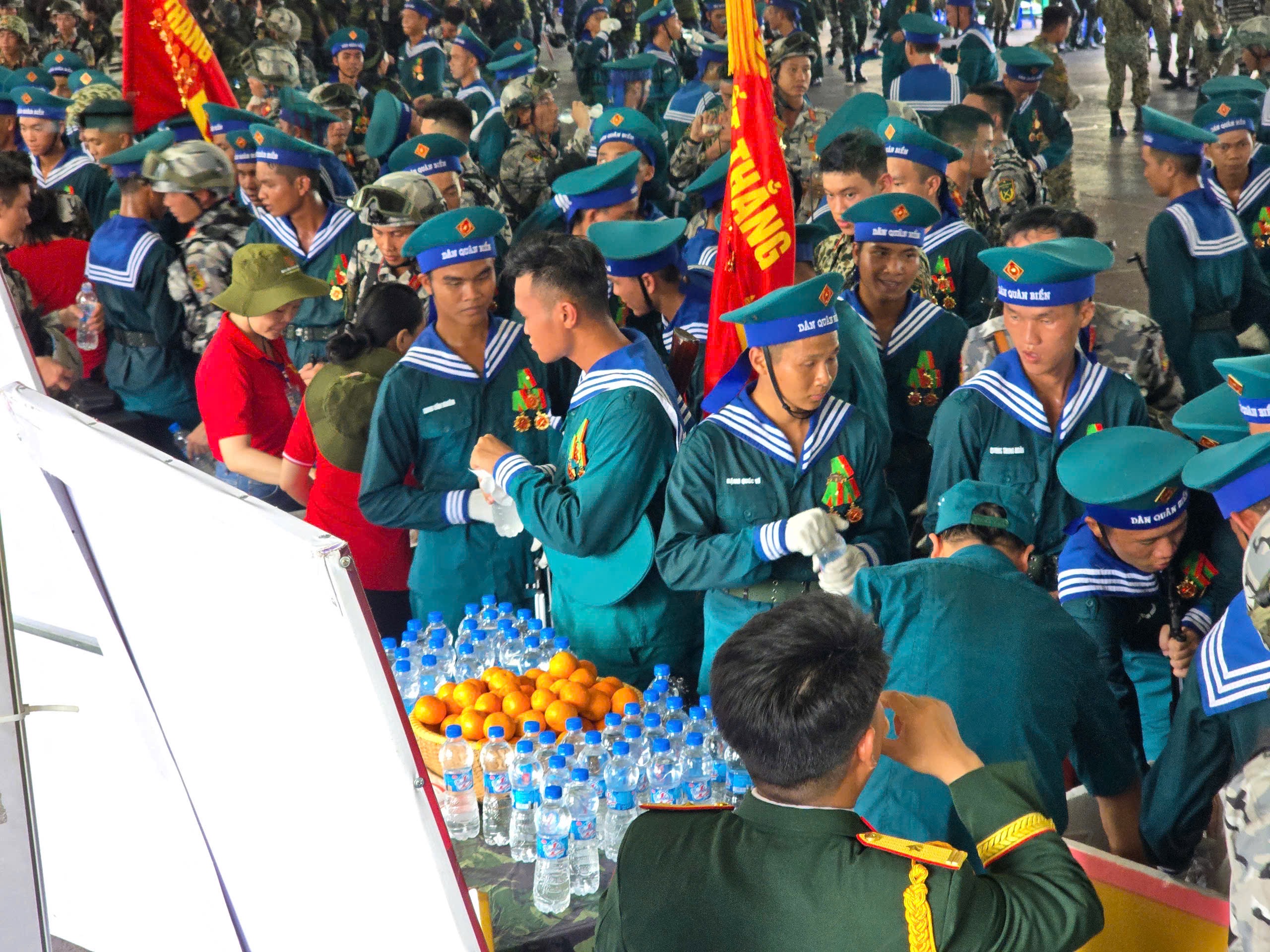 Đoàn tiếp sức của Bộ CHQS tỉnh Bà Rịa - Vũng Tàu tiếp sức tại khu vực Sân vận động Hoa Lư, Quận 1, TP. Hồ Chí Minh. Đây là nơi tập trung nghỉ sau khi tham gia tổng duyệt chương trình của gần 1.000 cán bộ, chiến sĩ tham gia khối diễu binh, diễu hành gồm: Khối chiến sĩ Lục quân, khối Tăng thiết giáp, khối chiến sĩ đặc công, khối nữ chiến sĩ biệt động, khối Nam dân quân biển, khối nữ du kích miền Nam và nữ dân quân miền Bắc.