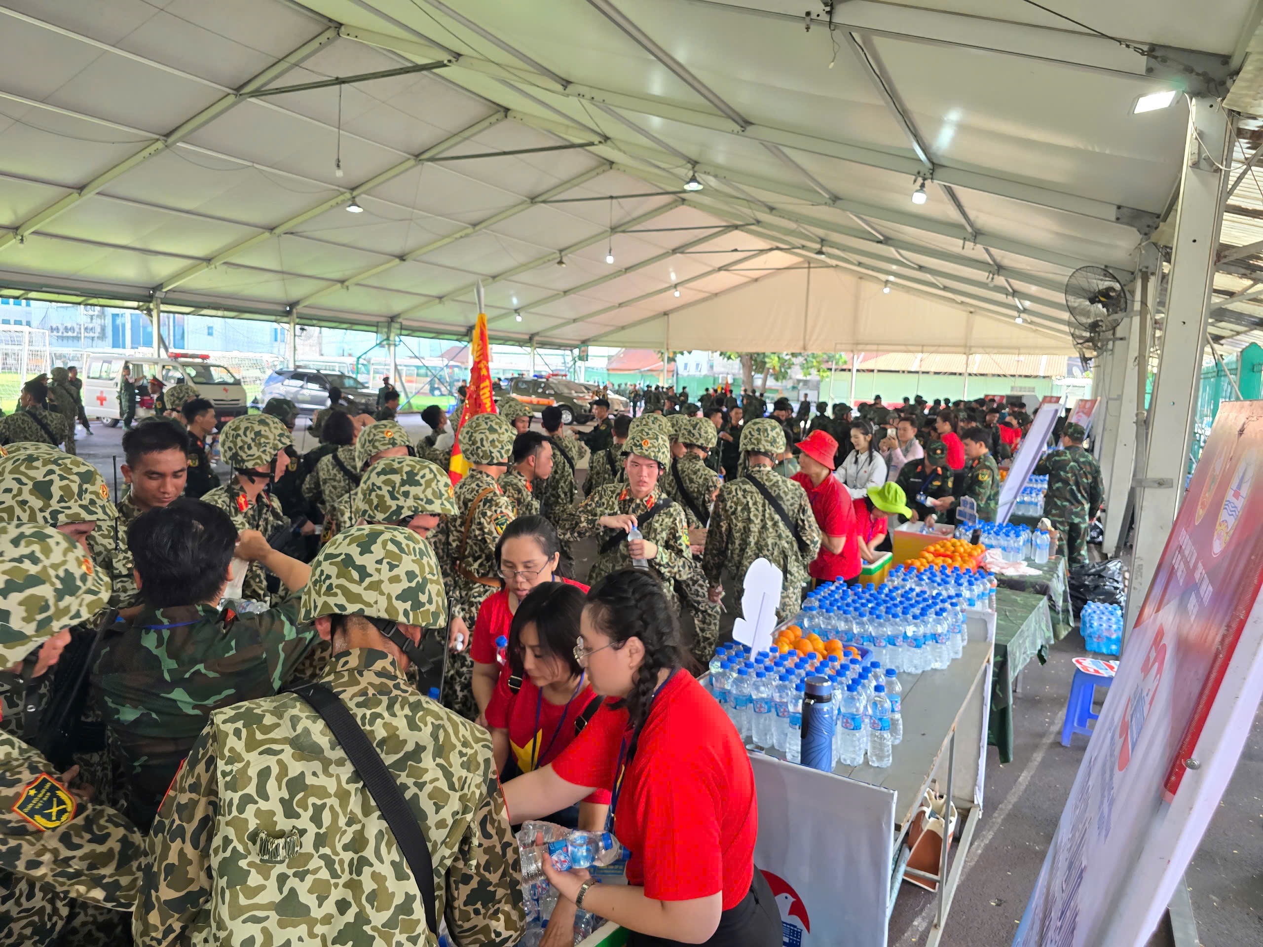Tiếp sức cho các lực lượng tại Sân vận động Hoa Lư (Quận 1, Thành phố Hồ Chí Minh).