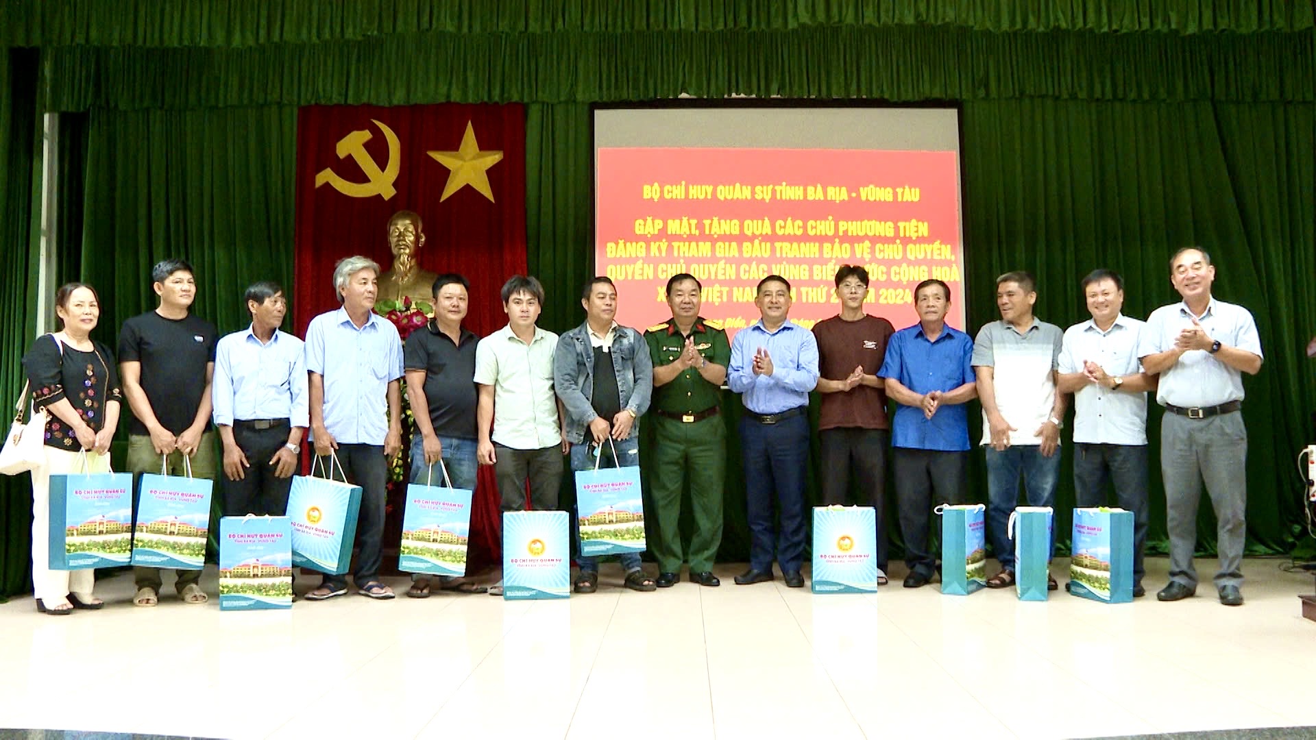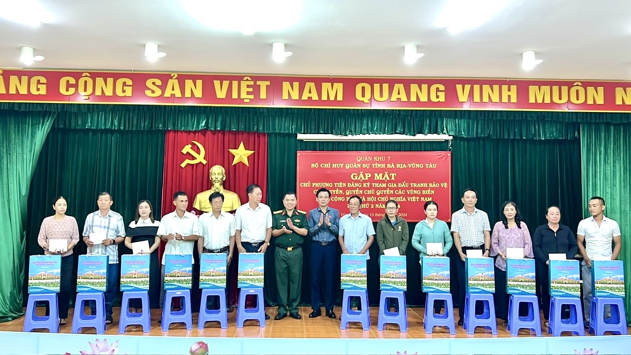 (QK7 Online) - Chiều ngày 13/9, Bộ CHQS tỉnh Bà Rịa - Vũng Tàutổ chứcgặp mặt, tặng quà các chủ phương tiện tàu, thuyền tham gia bảo vệ chủ quyền biển, đảo Việt Nam tại các huyện Long Điền, Đất Đỏ, Xuyên Mộc và thành phố Vũng Tàu.