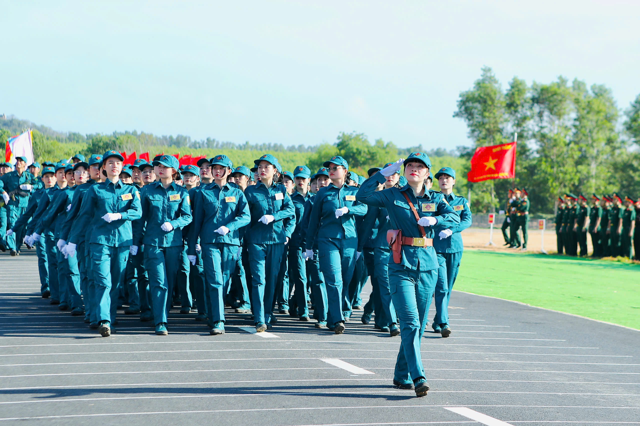 Trung đoàn Tên lửa 261 tham gia lễ ra quân huấn luyện. Khối nữ Dân quân tự vệ tại buổi ra quân huấn luyện.