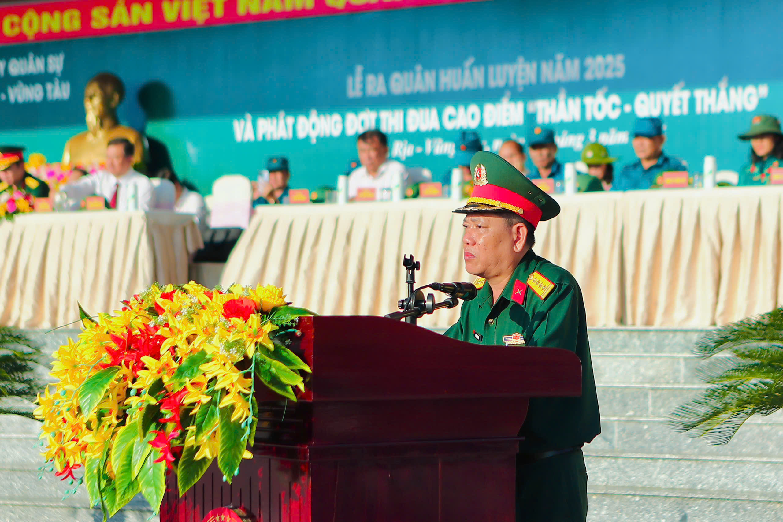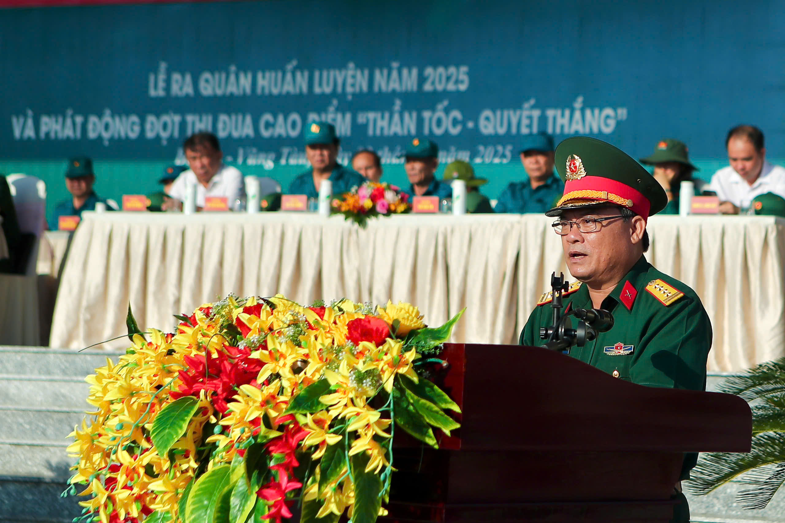 (QK7 Online) - Sáng 3/3, Bộ Chỉ huy Quân sự (CHQS) tỉnh Bà Rịa - Vũng Tàu tổ chức Lễ ra quân huấn luyện năm 2025 và phát động đợt thi đua cao điểm với chủ đề "Thần tốc - Quyết thắng". Tham dự buổi lễ có Đại tá Phạm Phú Ý, Phó Tham mưu trưởng Quân khu 7; đồng chí Trịnh Hàng, Phó Chủ tịch UBMTTQVN tỉnh cùng thủ trưởng Bộ CHQS tỉnh, lãnh đạo các ban, ngành, đoàn thể, địa phương và hơn 1.500 cán bộ, chiến sĩ LLVT tỉnh.