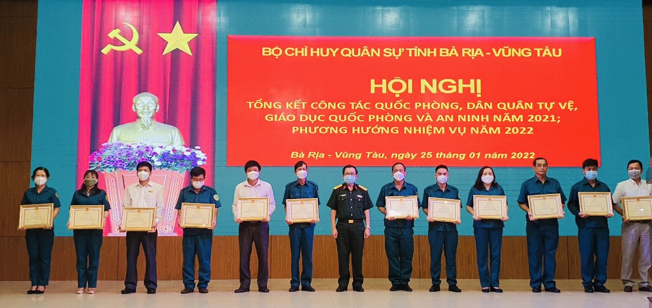 Dịp này, Bộ CHQS tỉnh tặng danh hiệu "Đơn vị tiên tiến" cho 14 tập thể, danh hiệu "Chiến sĩ tiên tiến" cho 21 cá nhân đạt thành tích tiêu biểu, xuất sắc trong thực hiện Phong trào Thi đua Quyết thắng, hoàn thành tốt công tác QP, DQTV, giáo dục QP&AN năm 2021.
