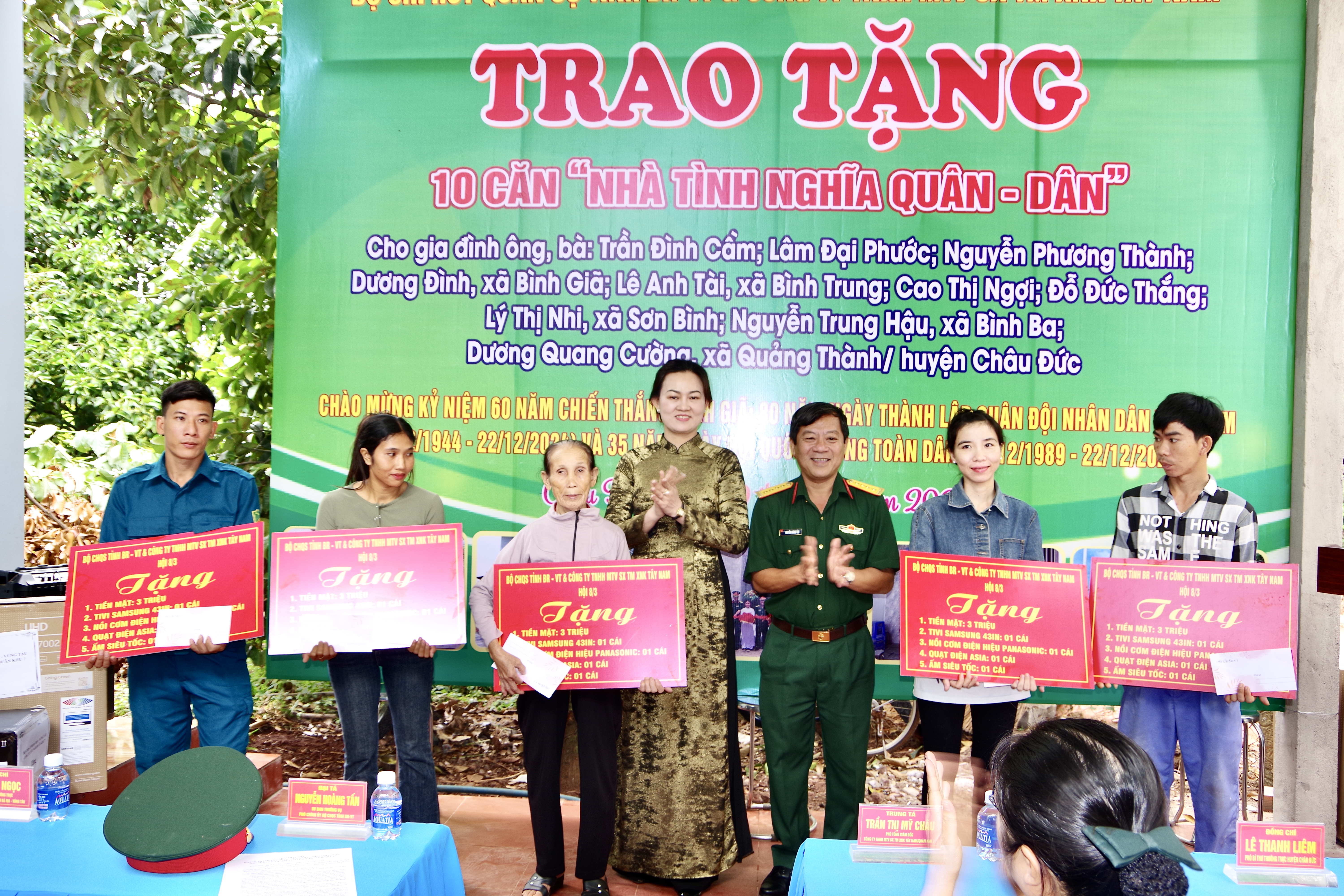 Tại lễ trao tặng, Bộ CHQS tỉnh, Công ty Tây Nam và chính quyền địa phương, các mạnh thường quân tặng các gia đình nhiều phần quà ý nghĩa phục vụ đời sống sinh hoạt.