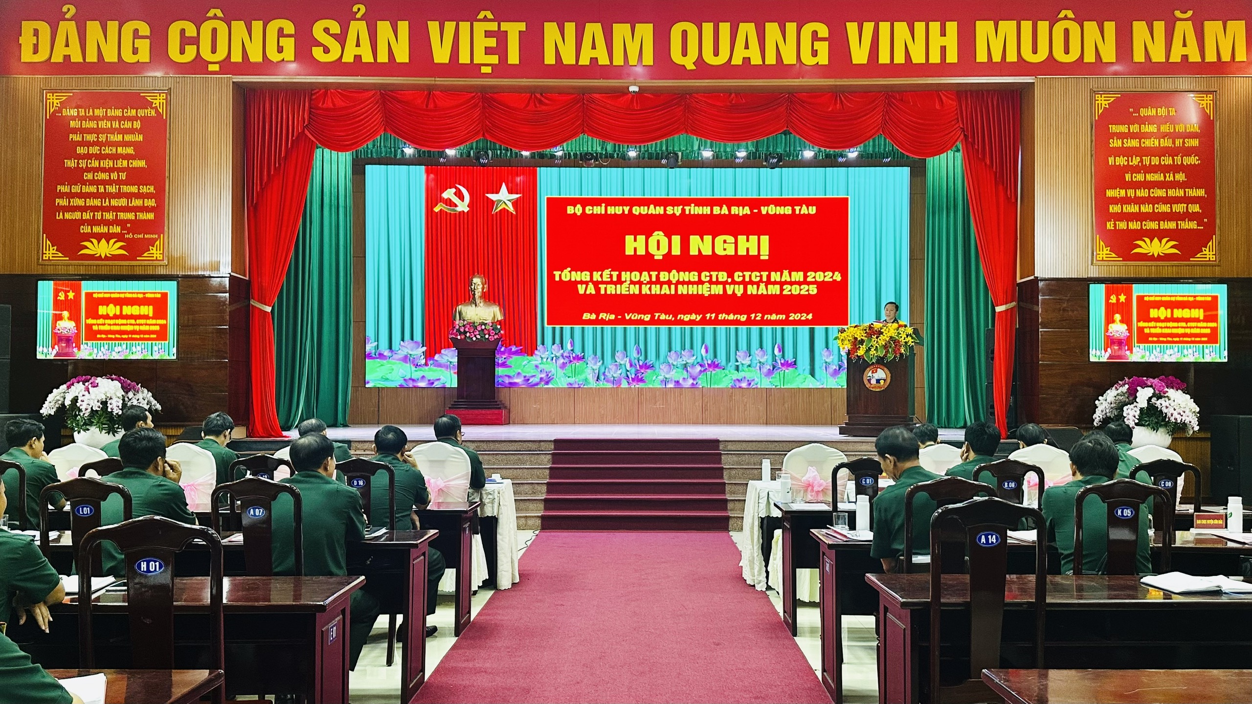 Năm 2024, hoạt động CTĐ, CTCT đã bám sát nhiệm vụ và hoạt động của LLVT tỉnh; triển khai nhiệm vụ chặt chẽ, đồng bộ từ tỉnh đến cơ sở. Trong đó, công tác tuyển chọn, gọi công dân nhập ngũ đạt 100% chỉ tiêu ở cả 3 cấp; kết nạp đảng viên trong các lực lượng đạt và vượt chỉ tiêu đề ra, riêng khối bộ đội thường trực đạt 113,04% chỉ tiêu; lực lượng dân quân thường trực, dự bị động viên đạt 134,9% chỉ tiêu. Thực hiện có hiệu quả mô hình “Chi bộ 5 tốt, đảng viên 5 tốt”, “Cán bộ, đảng viên dìu dắt quần chúng và cấp dưới”. Phối hợp với cấp ủy, chính quyền các địa phương xây tặng 26 căn nhà “Tình nghĩa Quân - Dân”, nhà “Đại đoàn kết”, nhà đồng đội, nhà tình nghĩa. Xây tặng công trình thể dục thể thao tại giáo xứ Hòa Xuân, xã Hòa Bình, huyện Xuyên Mộc và 10 căn nhà “tình nghĩa Quân - Dân” nhân kỷ niệm 60 năm Chiến thắng Bình Giã tại huyện Châu Đức.