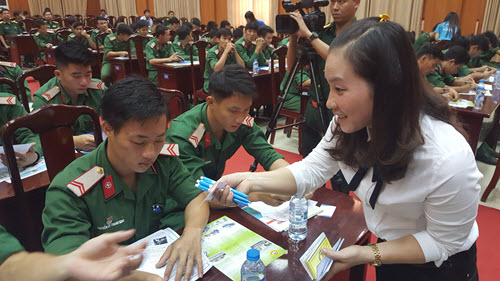 Các đơn vị tư vấn cũng đã thông tin đến bộ đội những chế độ, chính sách ưu đãi cho bộ đội khi học nghề; giới thiệu những ngành nghề đang có nhu cầu tuyển dụng cao.