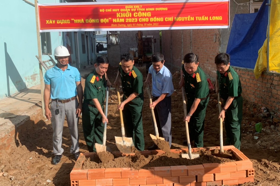 (QK7 Online) - Ngày 1-10, Bộ CHQS tỉnh Bình Dương khởi công xây dựng nhà đồng đội tặng Thiếu tá chuyên nghiệp Nguyễn Tuấn Long, thợ sửa chữa Phòng Kỹ thuật, Bộ CHQS tỉnh.