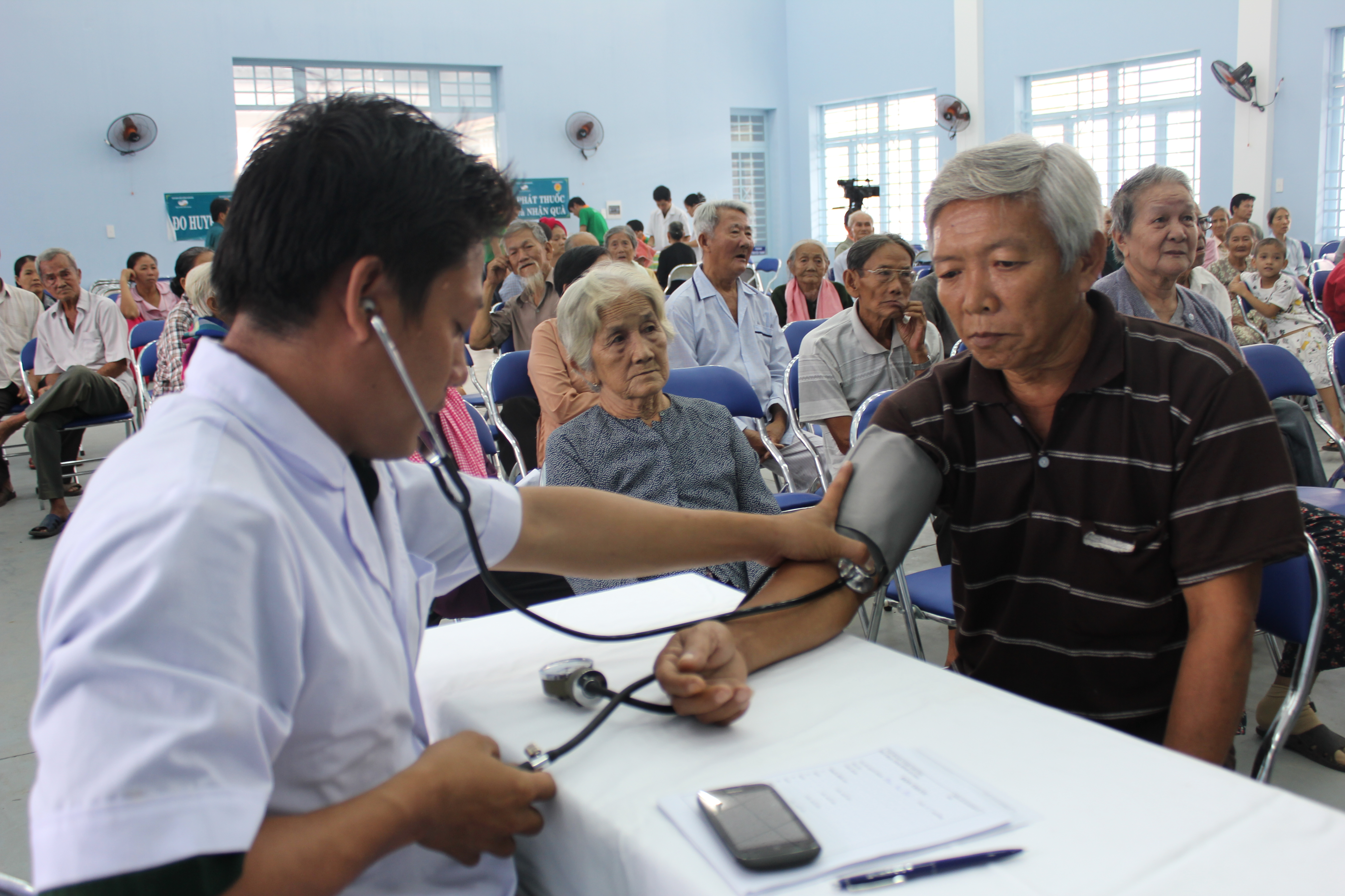 Phòng khám Quân dân y thu hút đông đảo người dân đến chăm sóc sức khỏe.