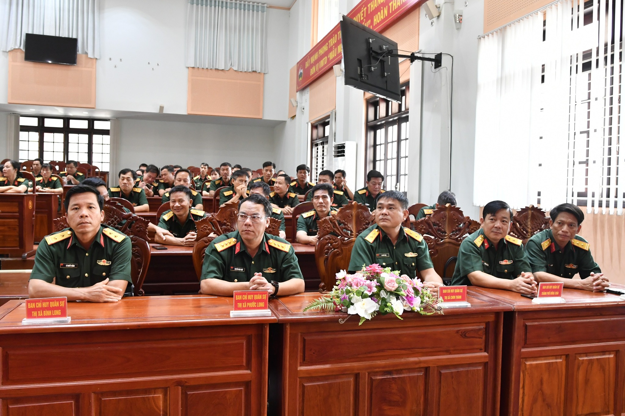 (QK7 Online) - Ngày 23/5, Bộ CHQS tỉnh Bình Phước tổ chức gặp gỡ 75 đồng chí quân nhân chuyên nghiệp (QNCN) của các cơ quan, Ban CHQS các huyện, thị xã, thành phố, đơn vị, trong đó có 31 đồng chí có nguyện vọng nghỉ hưu trước tuổi, 31 đồng chí là nữ QNCN và các đồng chí còn từ 5 năm tuổi quân trở xuống đến tuổi nghỉ hưu.