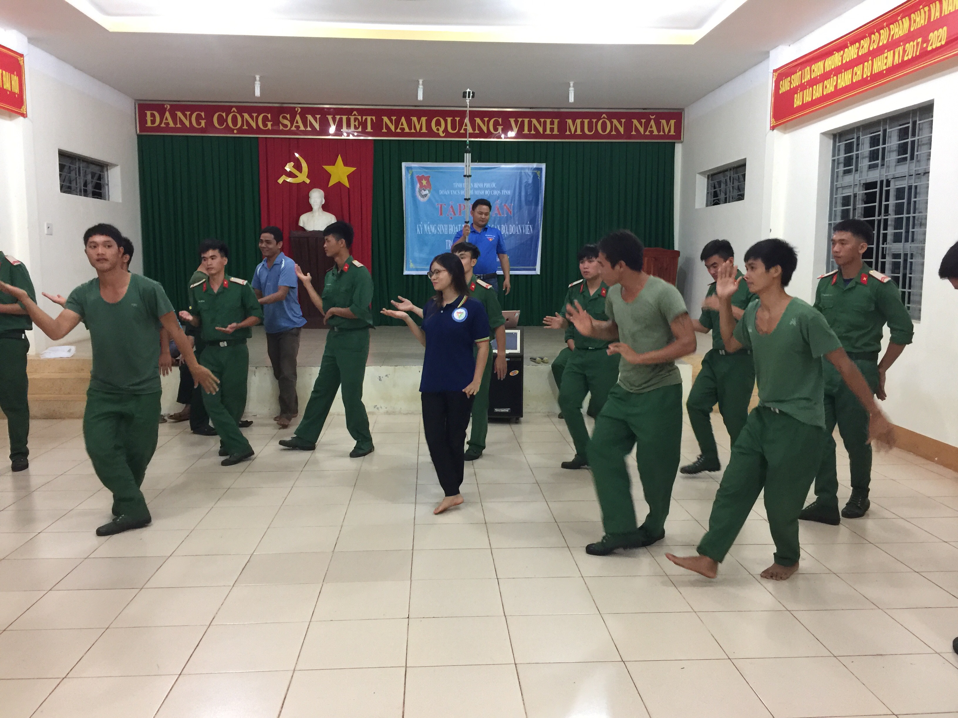 Hơn 50 cán bộ, đoàn viên trong Lớp tập huấn được dạy về điệu múa Lâm Thôn của người Khơme, các điệu nhảy khác, một số kỹ năng khi tham gia sinh hoạt tập thể.