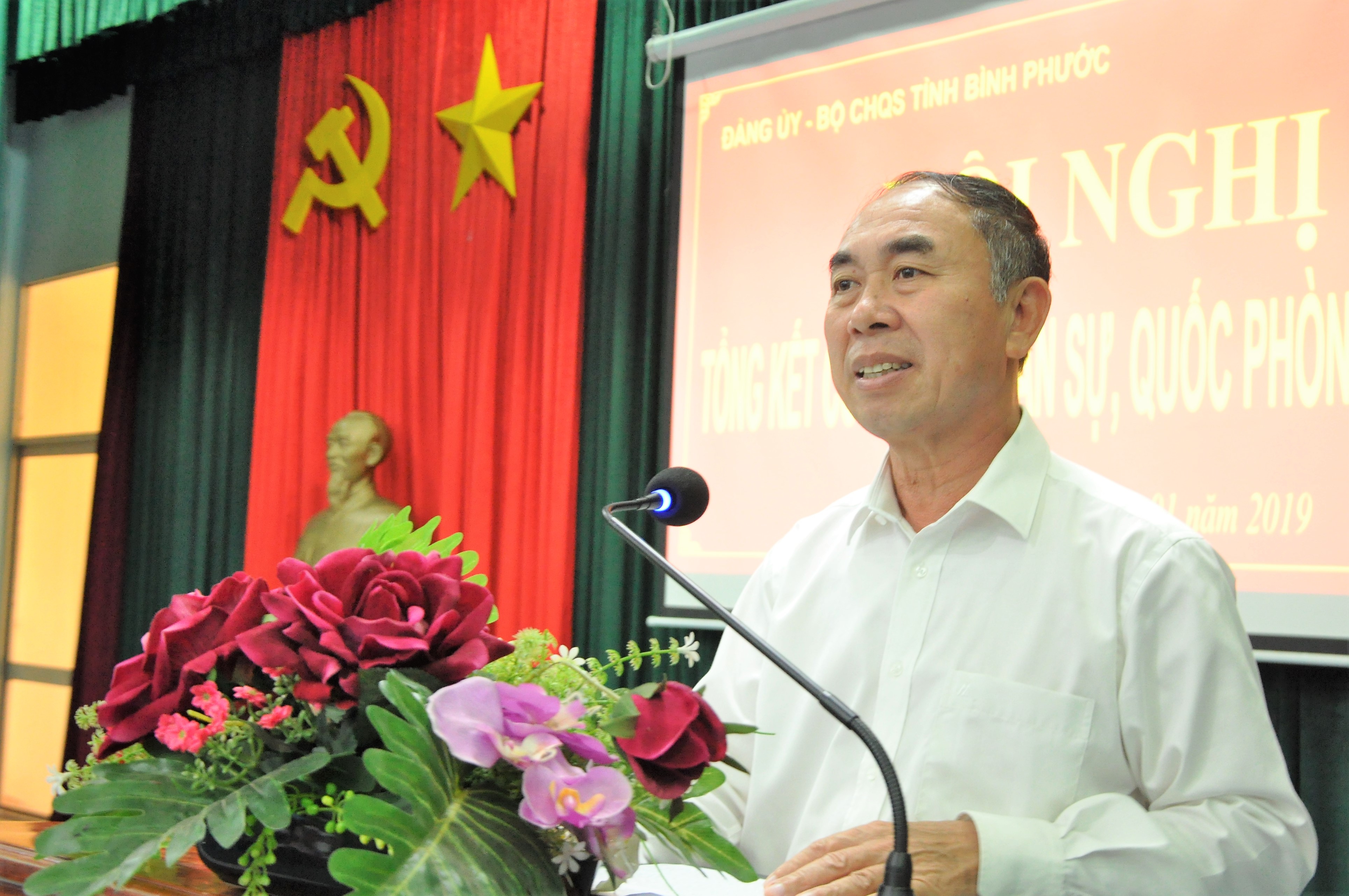 Phát biểu chỉ đạo tại hội nghị, đồng chí Nguyễn Tiến Dũng, Phó Chủ tịch UBND tỉnh Bình Phước biểu dương những kết quả đạt được trong việc thực hiện nhiệm vụ quân sự quốc phòng năm 2018 của Bộ CHQS tỉnh Bình Phước. Đồng chí Phó Chủ tịch UBND tỉnh đề nghị trong thời gian tới Bộ CHQS tỉnh cần tập trung thực hiện tốt các nhiệm vụ như: Phát huy vai trò lãnh đạo của cấp ủy, chỉ huy các cấp trong việc quán triệt triển khai thực hiện Nghị quyết thực hiện nhiệm vụ quân sự quốc phòng mà Đảng ủy Quân sự tỉnh đã đề ra. Tiếp tục tăng cường sự lãnh đạo của Đảng trong công tác giáo dục quốc phòng an ninh cho các đối tượng. Tập trung xây dựng đề án chốt dân quân biên giới, cụm dân quân liền kề; xây dựng lực lượng dân quân tự vệ tại các khu công nghiệp. Nâng cao chất lượng, hiệu quả công tác huấn luyện, sẵn sàng chiến đấu, diễn tập khu vực phòng thủ, kiểm tra bắn đạn thật; diễn tập phòng chống lụt bão, thiên tai. Duy trì nghiêm việc chấp hành kỷ luật, pháp luật Nhà nước, kỷ luật Quân đội. Thực hiện có chiều sâu việc quán triệt, học tập  Nghị quyết Trung ương 4, xây dựng Đảng bộ trong sạch vững mạnh gắn với việc “Học tập và làm theo tư tưởng, đạo đức, phong cách Hồ Chí Minh”. Giải quyết kịp thời các chế độ chính sách theo Quyết định 62 của Thủ tướng Chính phủ. Đồng thời, thực hiện tốt công tác đối ngoại quốc phòng, phối hợp nắm chắc tình hình, giữ vững ổn định chính trị - trật tự an toàn xã hội trên tuyến biên giới; góp phần thực hiện thắng lợi nhiệm vụ chính trị, quân sự quốc phòng năm 2019.