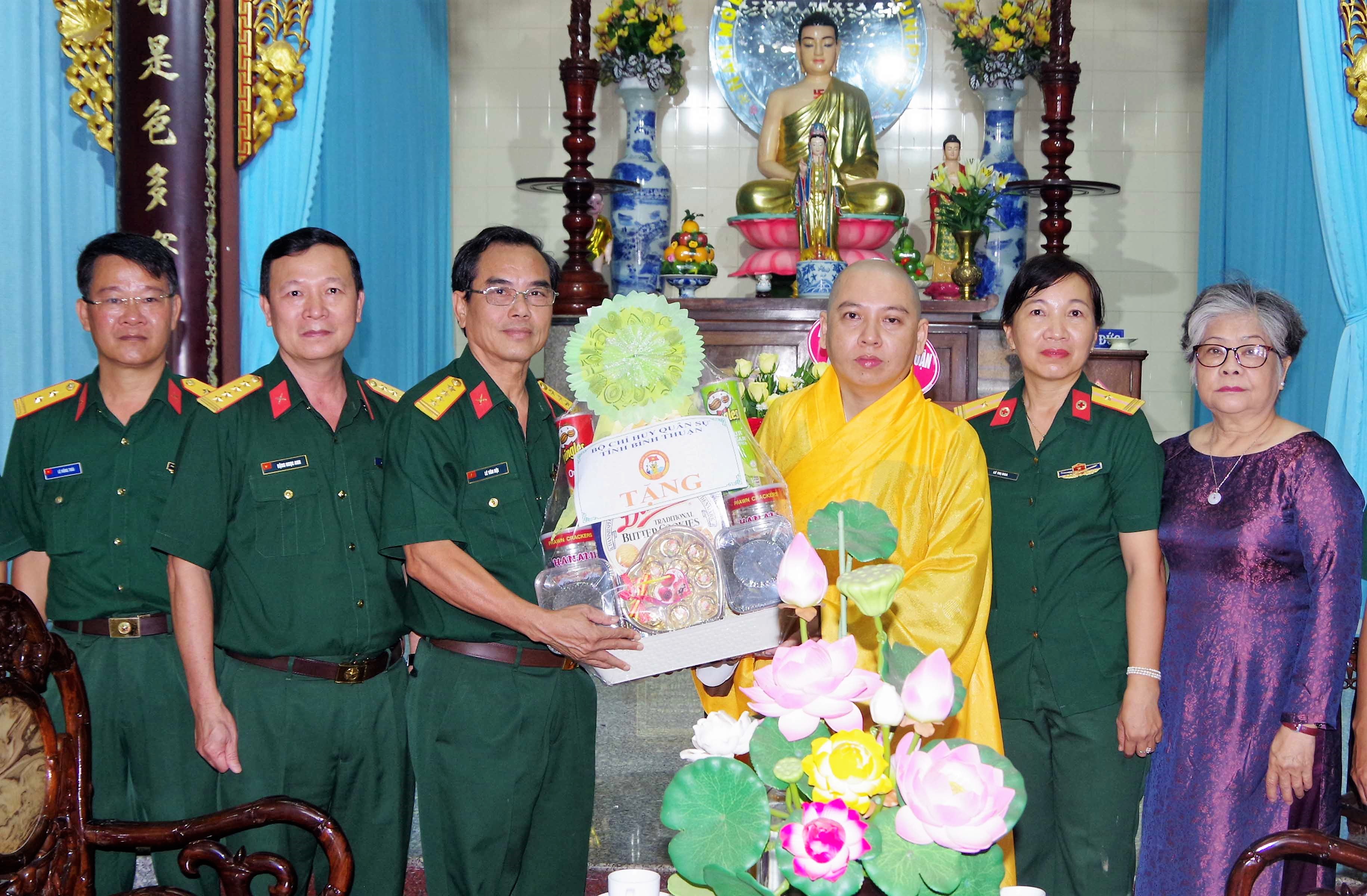 Đại diện Ban Trị sự Giáo hội Phật giáo tỉnh Bình Thuận bày tỏ niềm vui mừng được đón tiếp cán bộ, sĩ quan Bộ CHQS tỉnh đến thăm, chúc mừng và khẳng định sẽ tiếp tục vận động các tăng, ni, phật tử tích cực tham gia các cuộc vận động, các phong trào thi đua yêu nước, luôn song hành cùng chính quyền và LLVT để giữ gìn an ninh chính tri, trật tự an toàn xã hội, bảo vệ Tổ quốc.