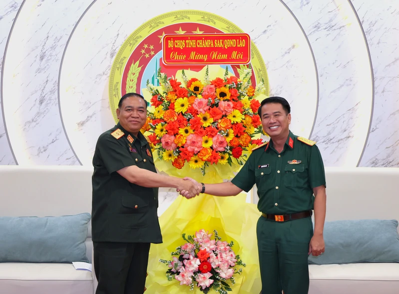 Tại buổi chúc Tết, Thiếu tướng Vi-la-tu Vo-la-chít, Chỉ huy trưởng Chính trị Bộ CHQS tỉnh Champasak chúc mừng Đại hội đại biểu toàn quốc lần thứ XIV của Đảng Cộng sản Việt Nam thành công rực rỡ; Quân khu 7 vinh dự đón nhận Danh hiệu Anh hùng Lực lượng vũ trang nhân dân, Huân chương Bảo vệ Tổ quốc hạng Nhất nhân kỷ niệm 80 năm Ngày truyền thống (10/12/1945 - 10/12/2025).
