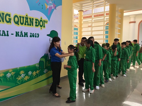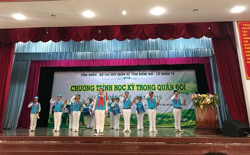 Các em học sinh đồng diễn văn nghệ khai giảng lớp "Học kỳ trong Quân đội".